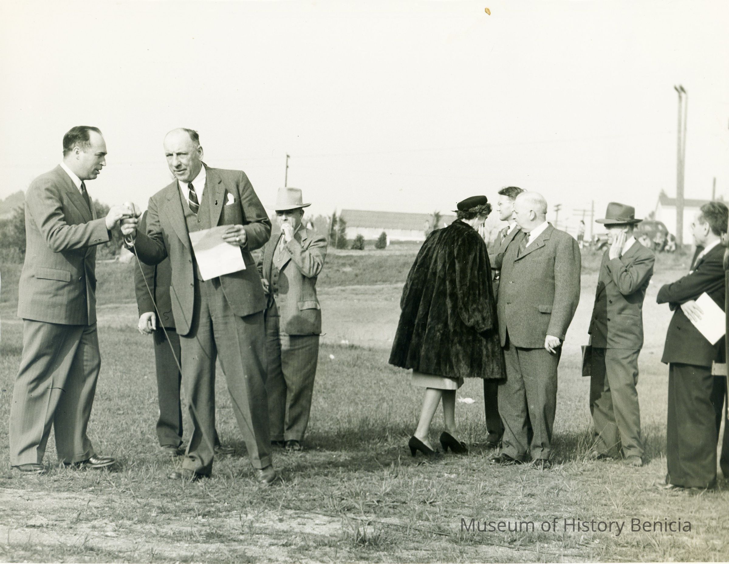Photo of Thomas Wright with several other people in a field. It looks like a formal celebration. Thomas Wright is standing in the back next to a woman in a fur coat.Collection