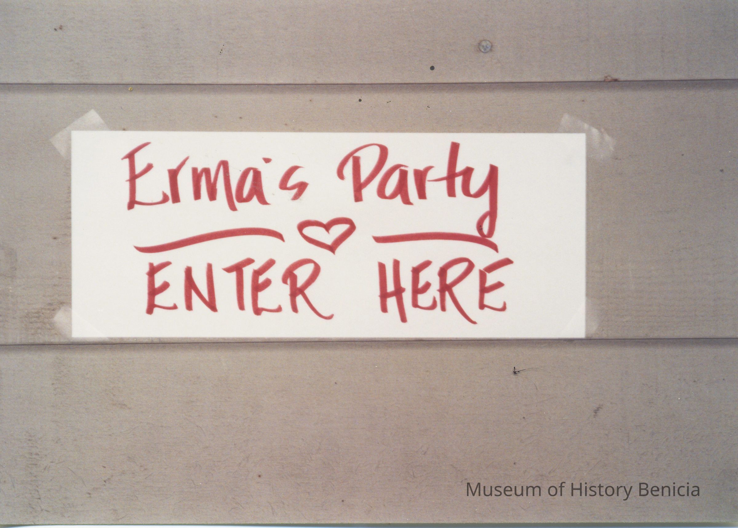A photo of the sign telling people where to go for Erma Wright's 100th birthday party. It was at Gina's on 11/16/1991
