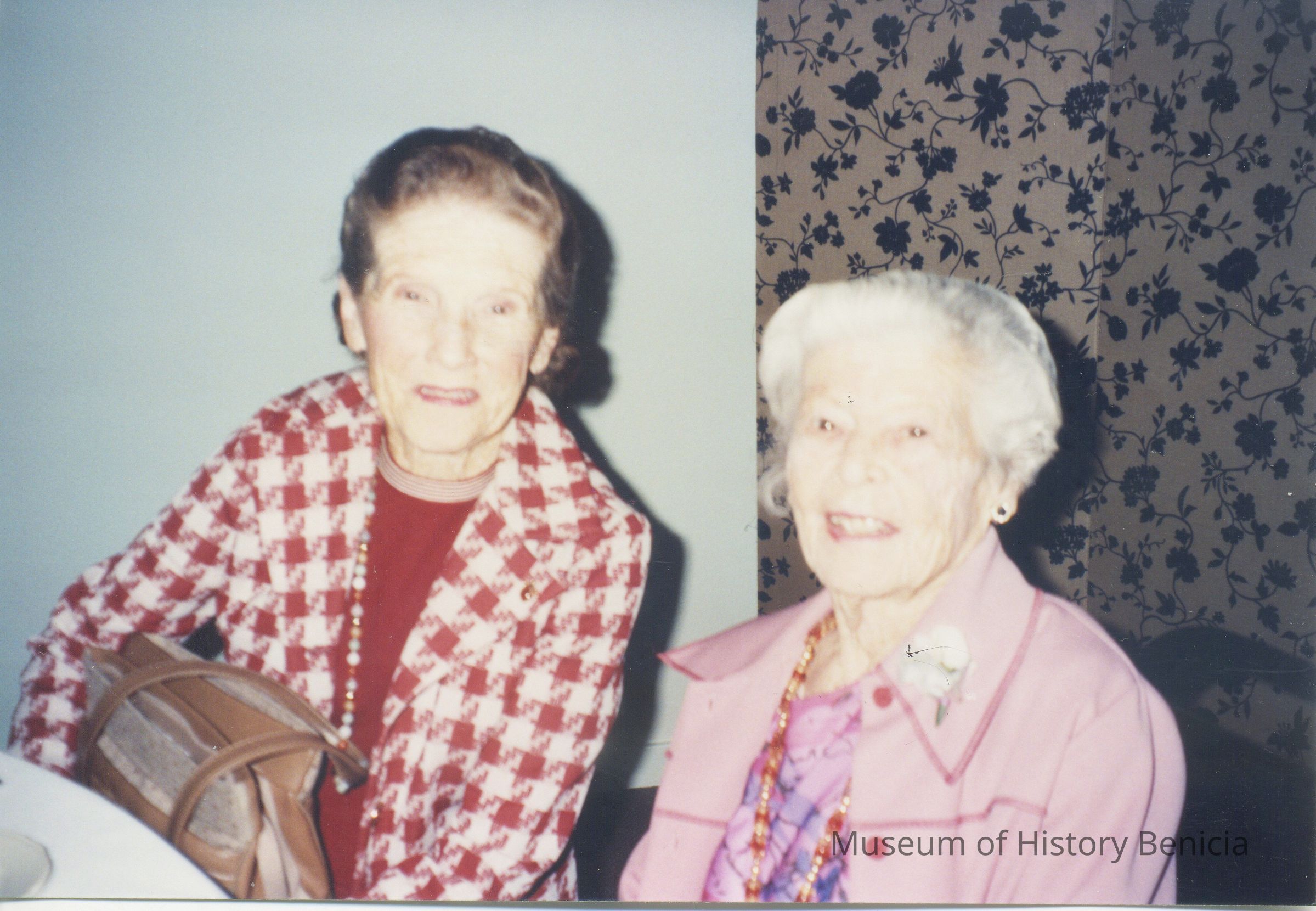A photo taken at Erma Wright's 100th birthday party at Gina's on 11/16/1991. In the photo is Ruth Alexander and Sandy.