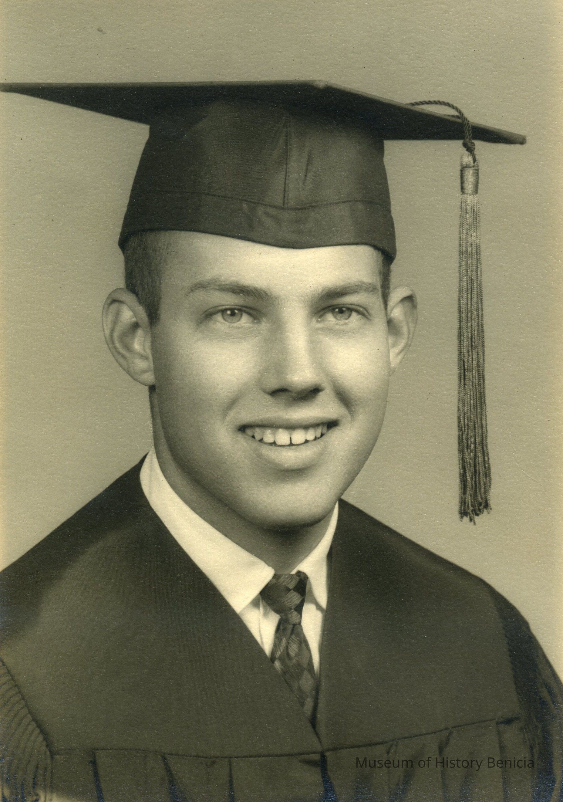 B/W Photograph - Graduation Photograph - Ed Rankin, Benicia High School Class of 1962 in Cap and Gown;