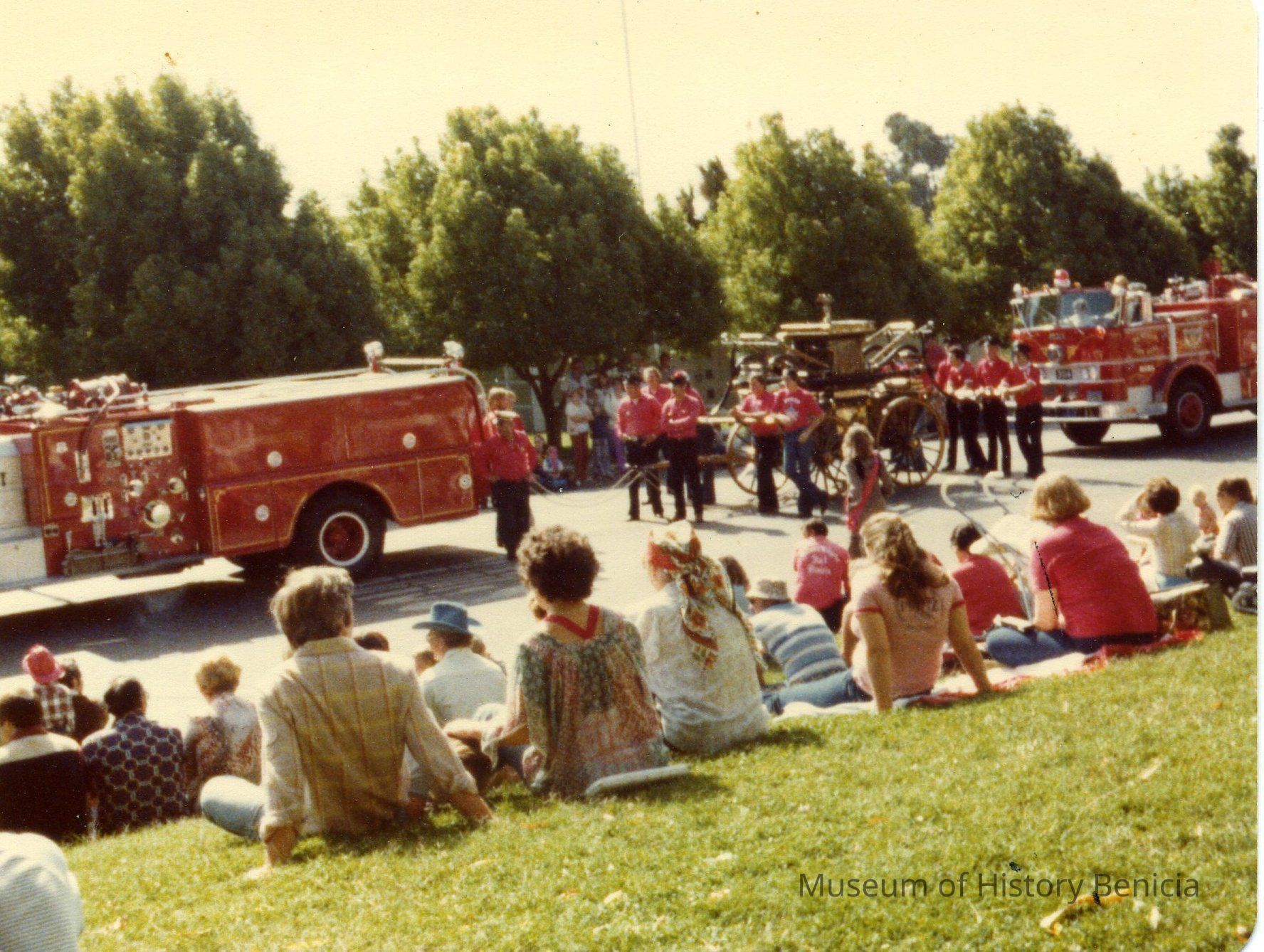 Color Photograph - 1978 Firemen's Muster Parade stopped in front of the City Park 3-1/2 x 4-1/2 [From the Rankin Collection]