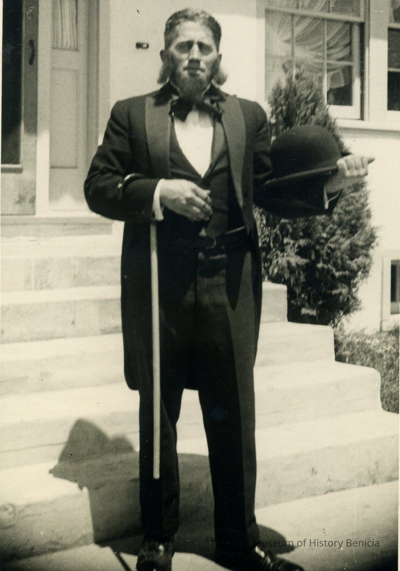 B/W Photograph - Mr. Richard Habeger in costume, possibly for the 1949 Old Timer's Celebration in Benicia. 3-1/2" x 5"