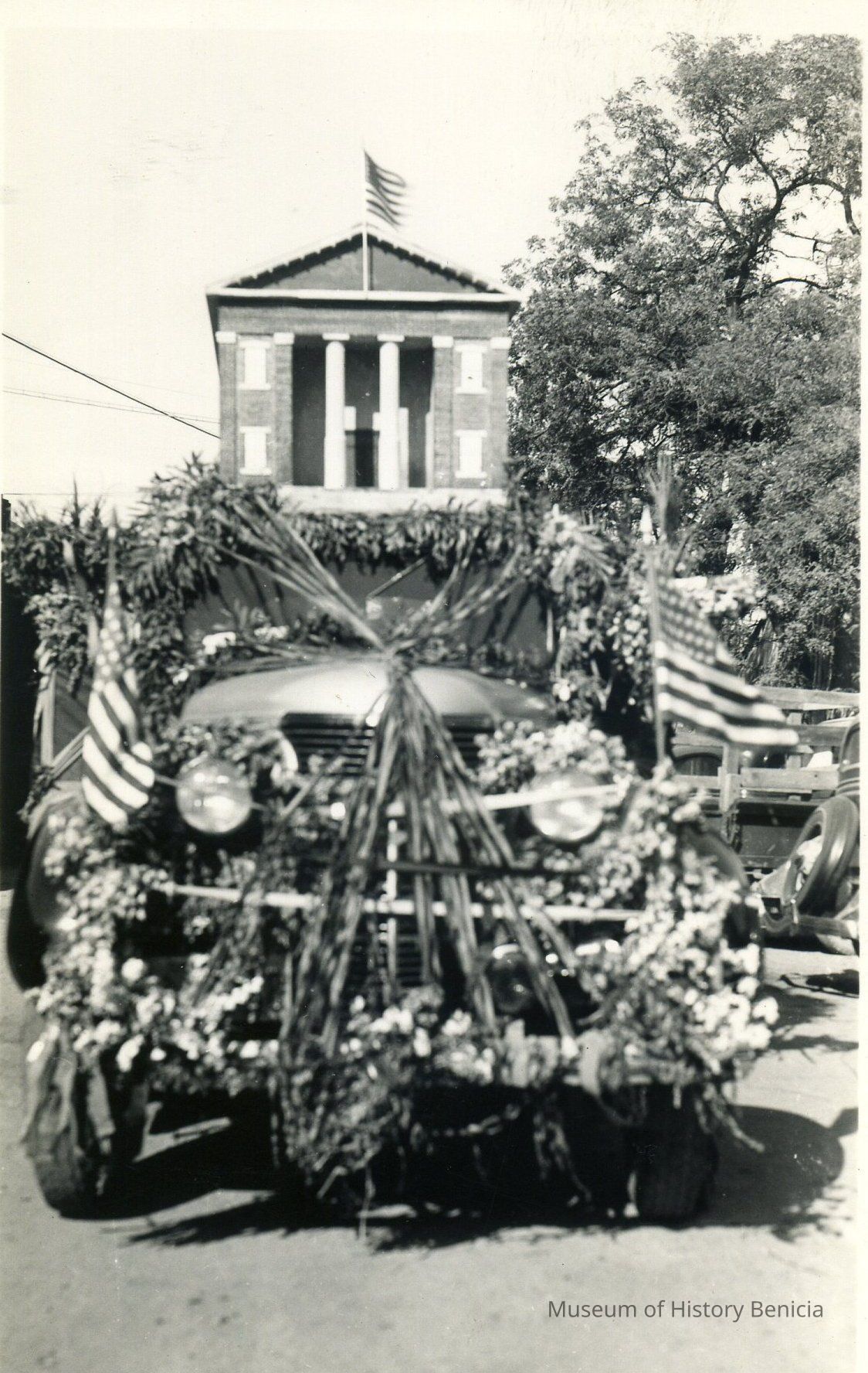 B/W Photograph - a decorated truck as a float for a parade in Benicia, date unknown 3-1/4" x 5"