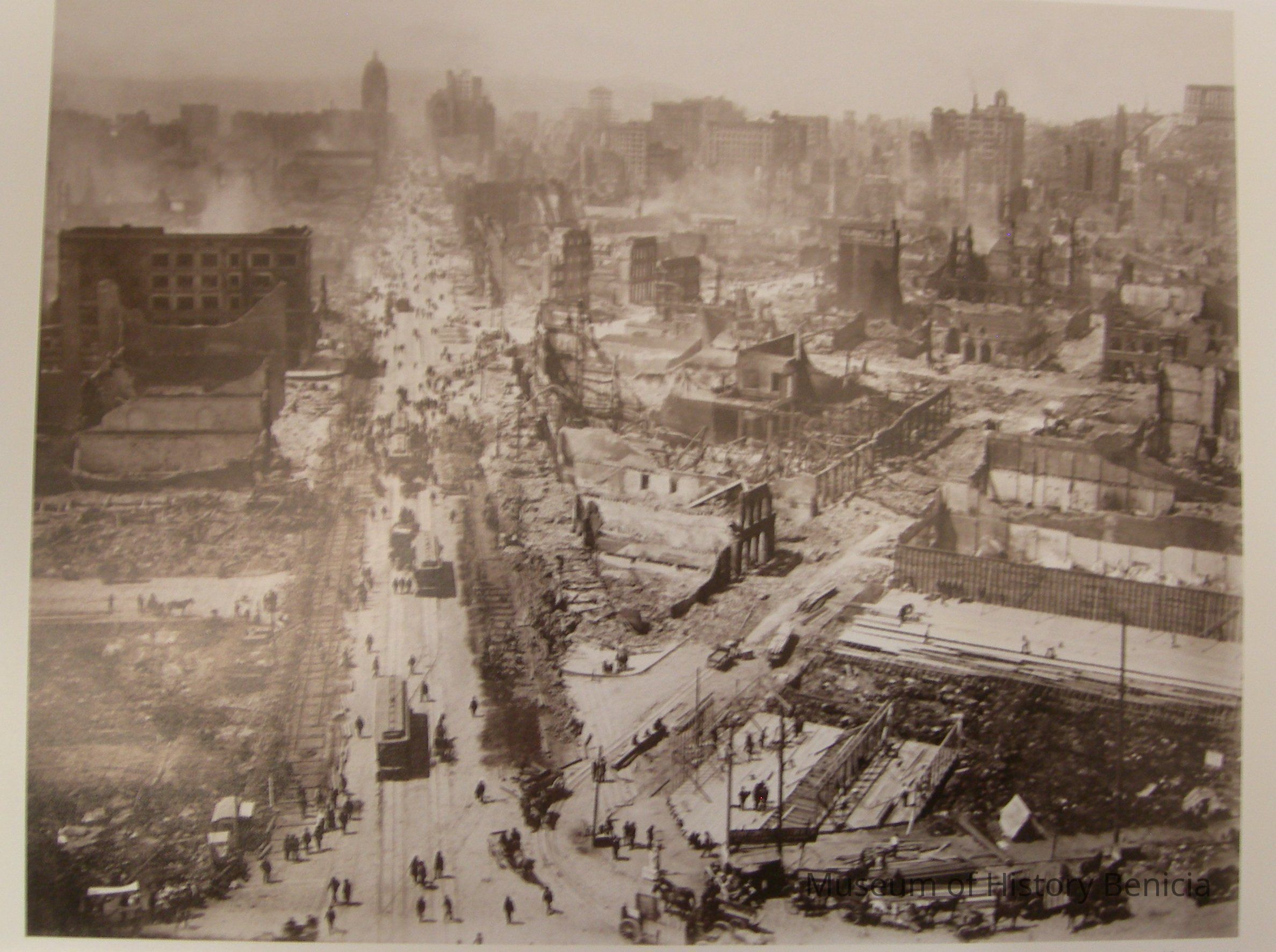 B/W photograph of San Francisco in 1906 after the earthquake, taken from the Ferry Building 12" x 16"