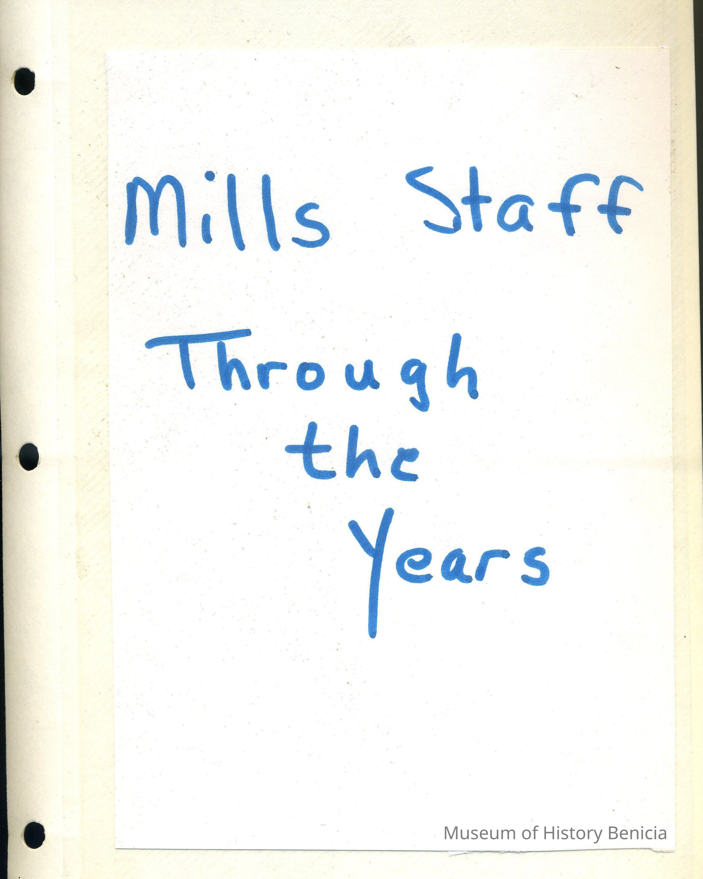 Mills Elementary School Photographs Binder of the Staff Through the Years: there are composite sheets for 1968 - 1987 and 1993 - 2002; early photographs are in black and white while the later ones are in color; there are some candids in the classrooms and comic picture day phorotgraphs.Collection