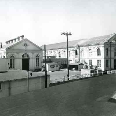 This is a photograph of buildings 55 and 56 . The brick exterior has been painted white.