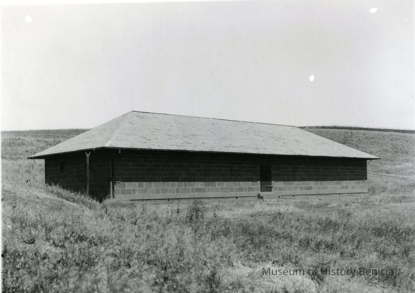 This is a photograph of a powder magazine building 2 at the Benicia Arsenal.