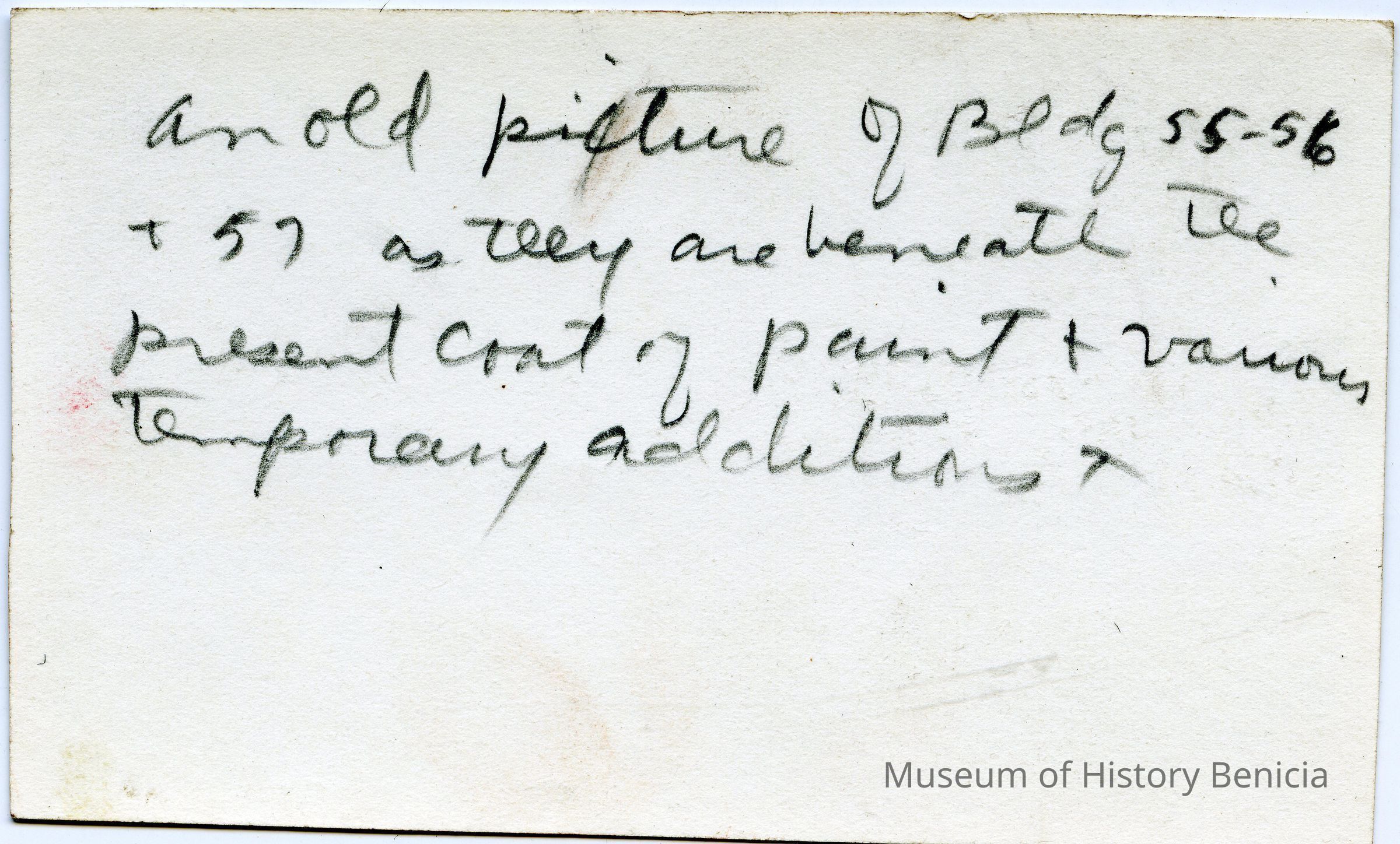 This is a photo of buildings 55, 56, and 57. It is before they were painted white.