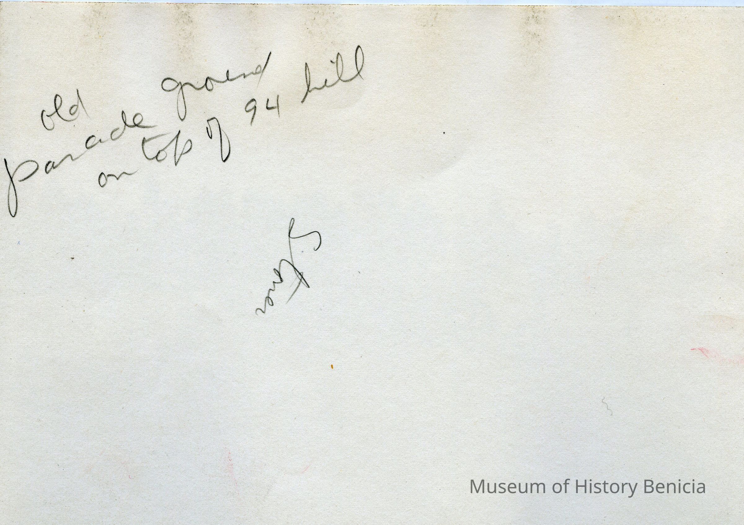 The back of the photo says "Stoner" probably referring to Emerson Stoner who worked at the Arsenal, This may have been his original photo from which the copy was made. It also says "Old Parade ground on top of 94 hill".Collection