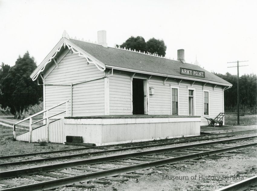 This is a photo of the Army Point train station on the Benicia Arsenal. It was building number 54 and was built in 1880. It may have later been converted to a pump house.Collection
