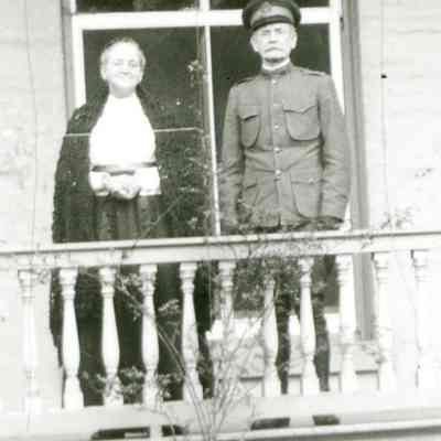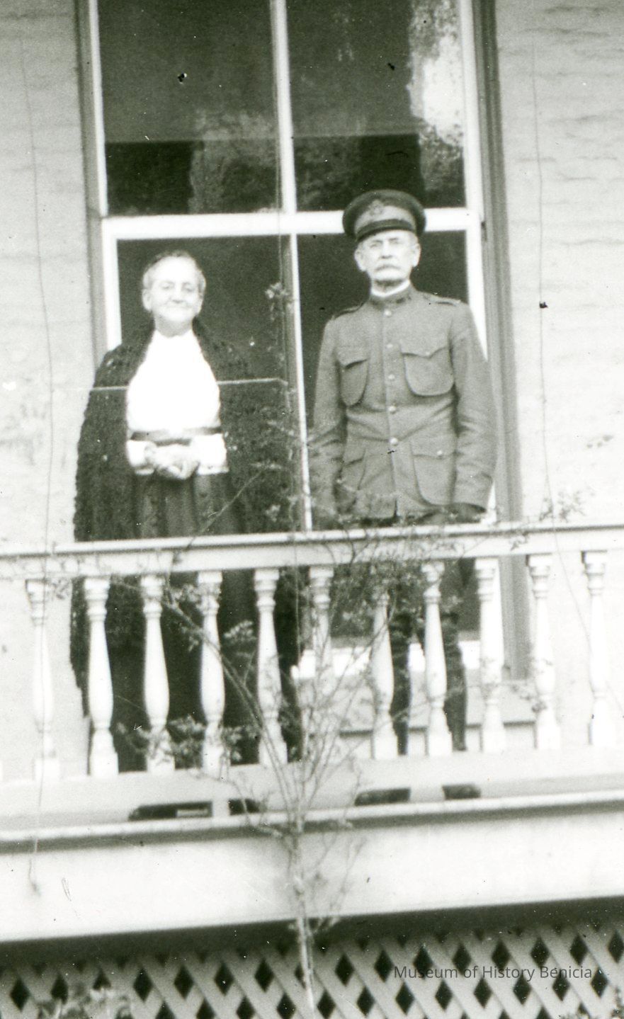 This is a photo of a building on the Benicia Arsenal. This is the enlisted men's barracks building number 45. It was built in 1872. The man on the steps seems to be wearing a WW I uniform.Collection
