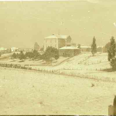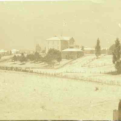 This is a photo of the old high school in snow.