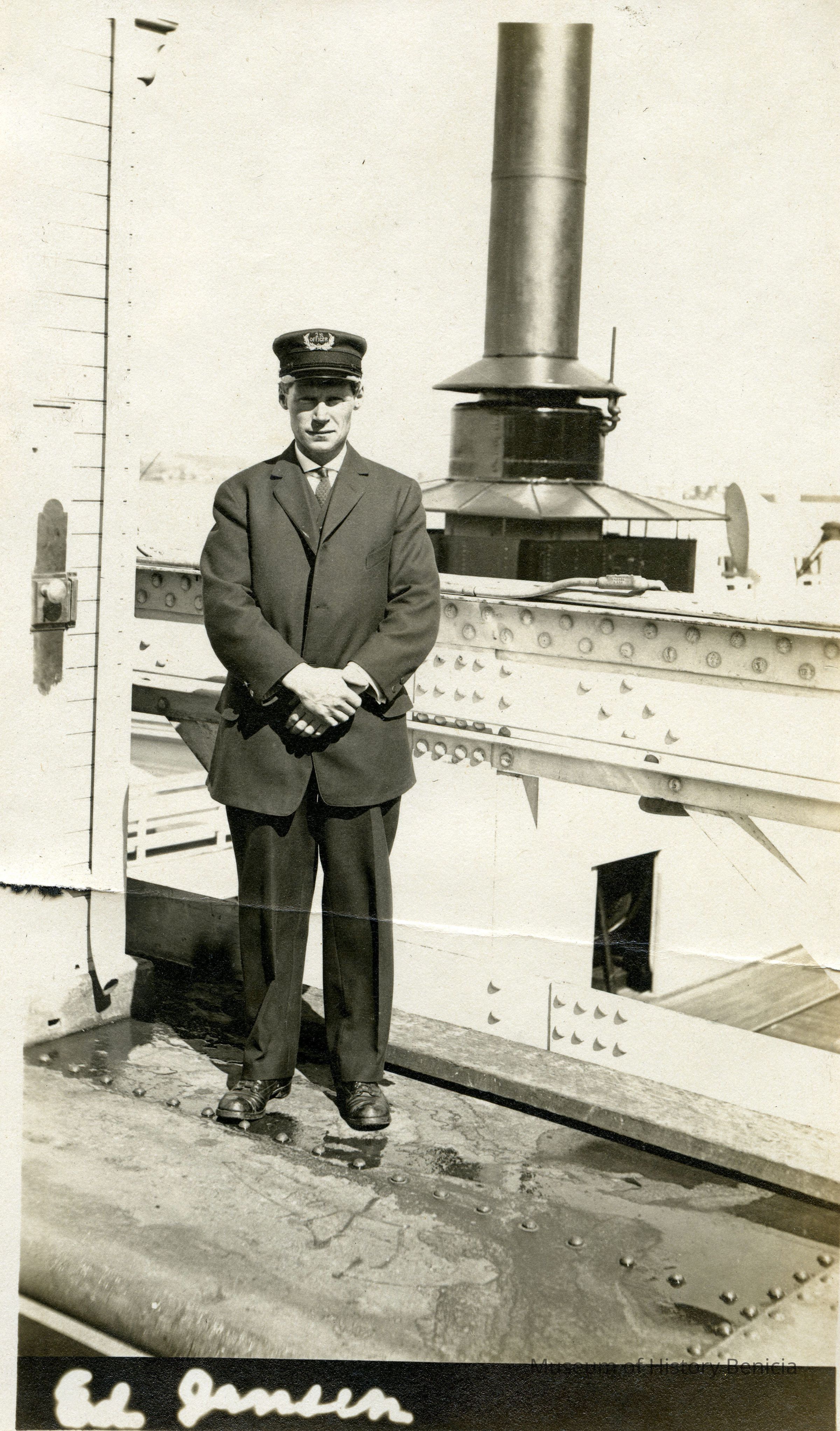 This is a photo of Ed Jensen a crew member on the Benicia ferry boats.
