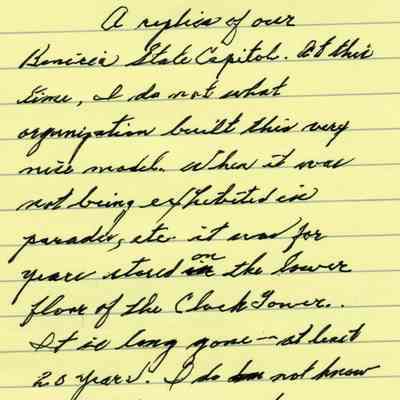 This is a photo of a parade float carrying a replica of the Old State Capitol in Benicia. Harry Wassmann has a note with the photo saying that he doesn't know who built the model but that it was stored on the lower floor of the Clock Tower.Collection