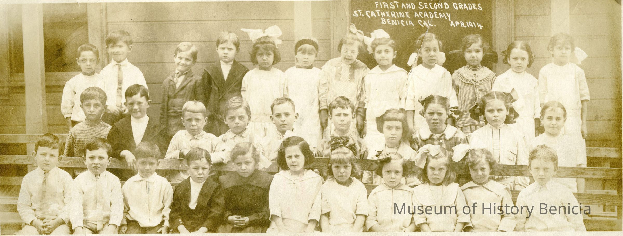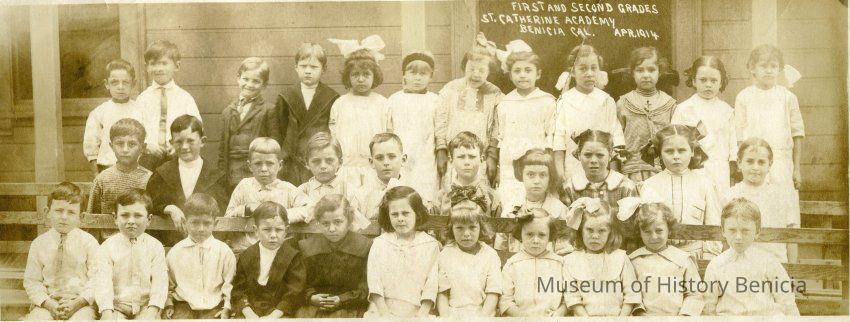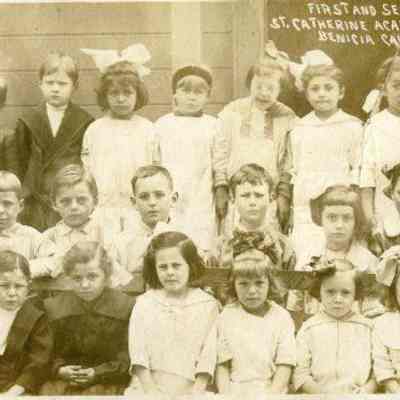 This is a class photo of the first and second grades at St. Catherine's on April, 1914.