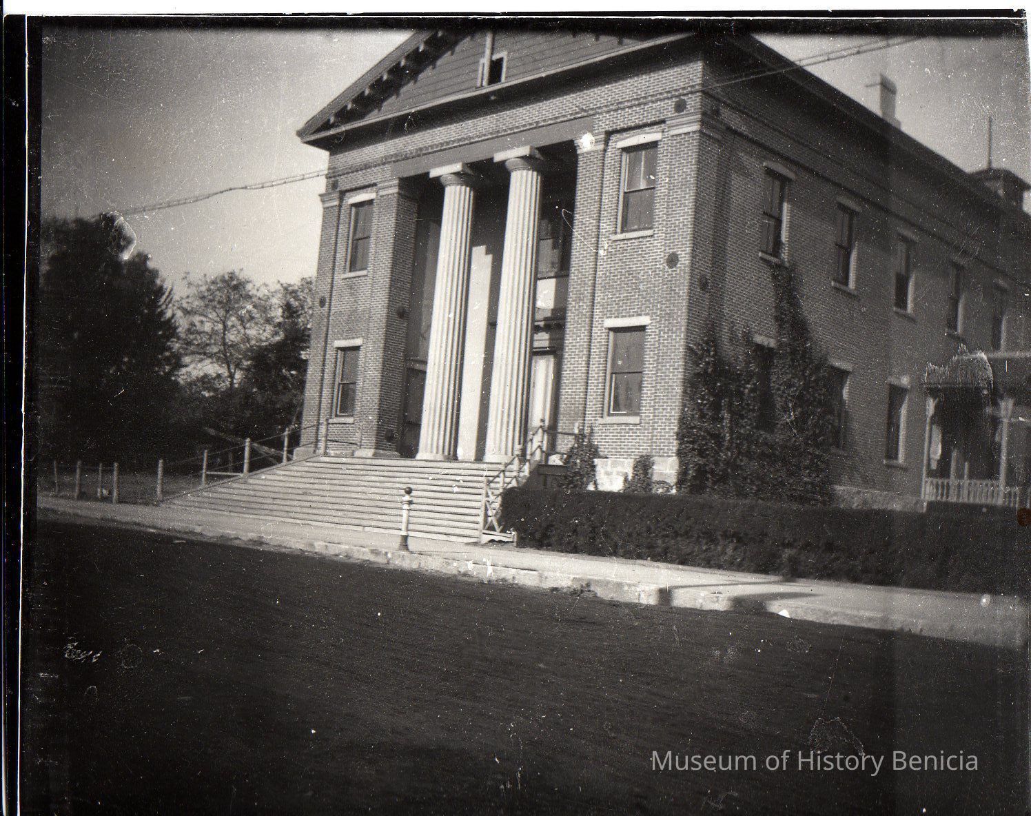 Benicia State Capitol Building. Stored in original dry plate by New York Dry Plate Co. Black and white glass negative.