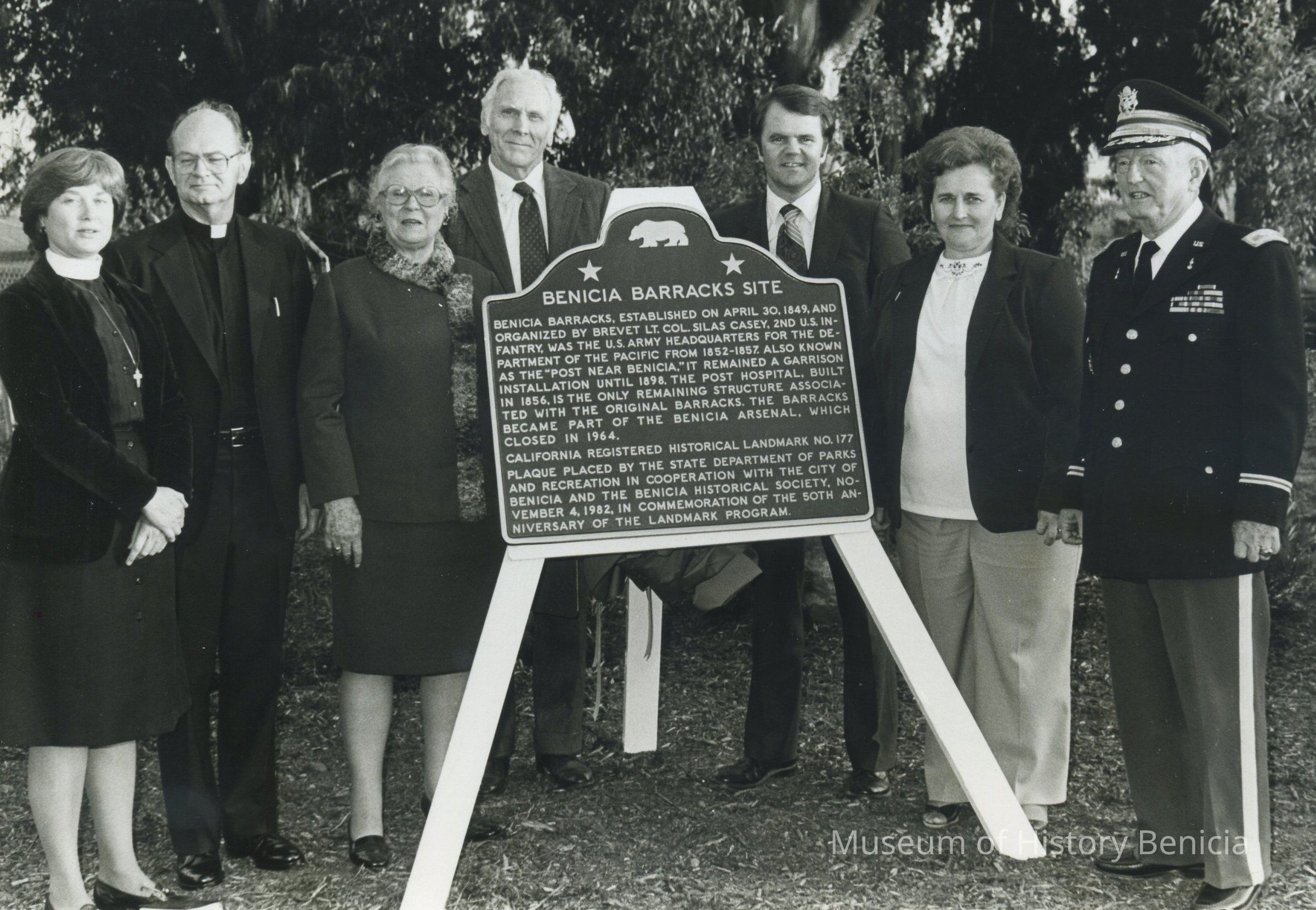 B/W Photograph 5" x 7" - Concerns the unveiling of a plaque at Benicia Barracks Site;