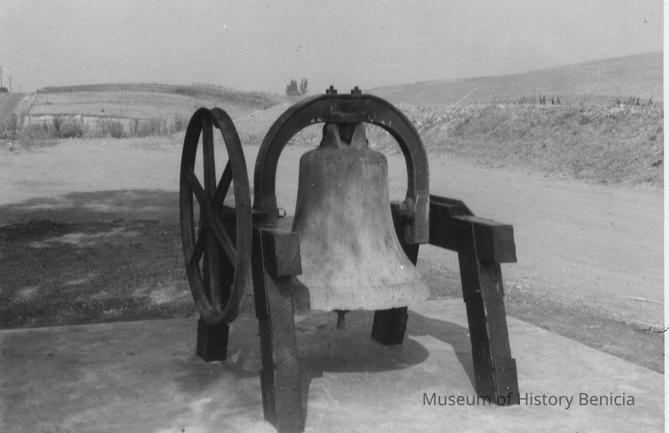 B/W photograph: according to caption: Bell cast at Pacific Mail Steamship Co. shops in 1853 and also on back of photograph: "Congregational Church"Collection
