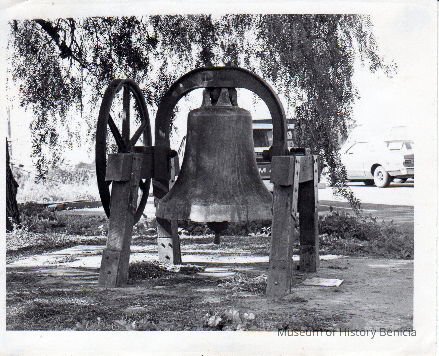 This bell was cast at the Pacific Mail and Steamship Co. plant when it was located in Benicia from 1850 until 1869. It was placed in the belfry of the Congregational Church on J Street, Benicia. The bell has been removed and placed in the garden of new church located at 1305 West Second Street...Collection