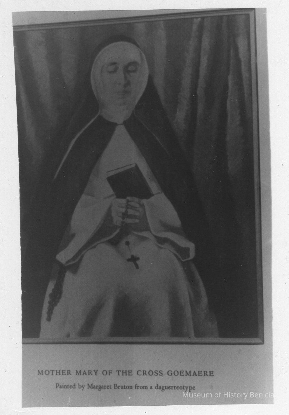 B/W photograph: photograph of a painting of Mother Mary of the Cross Goemaere, who founded the first convent in Monterey in 1851 and moved to Benicia in 1854