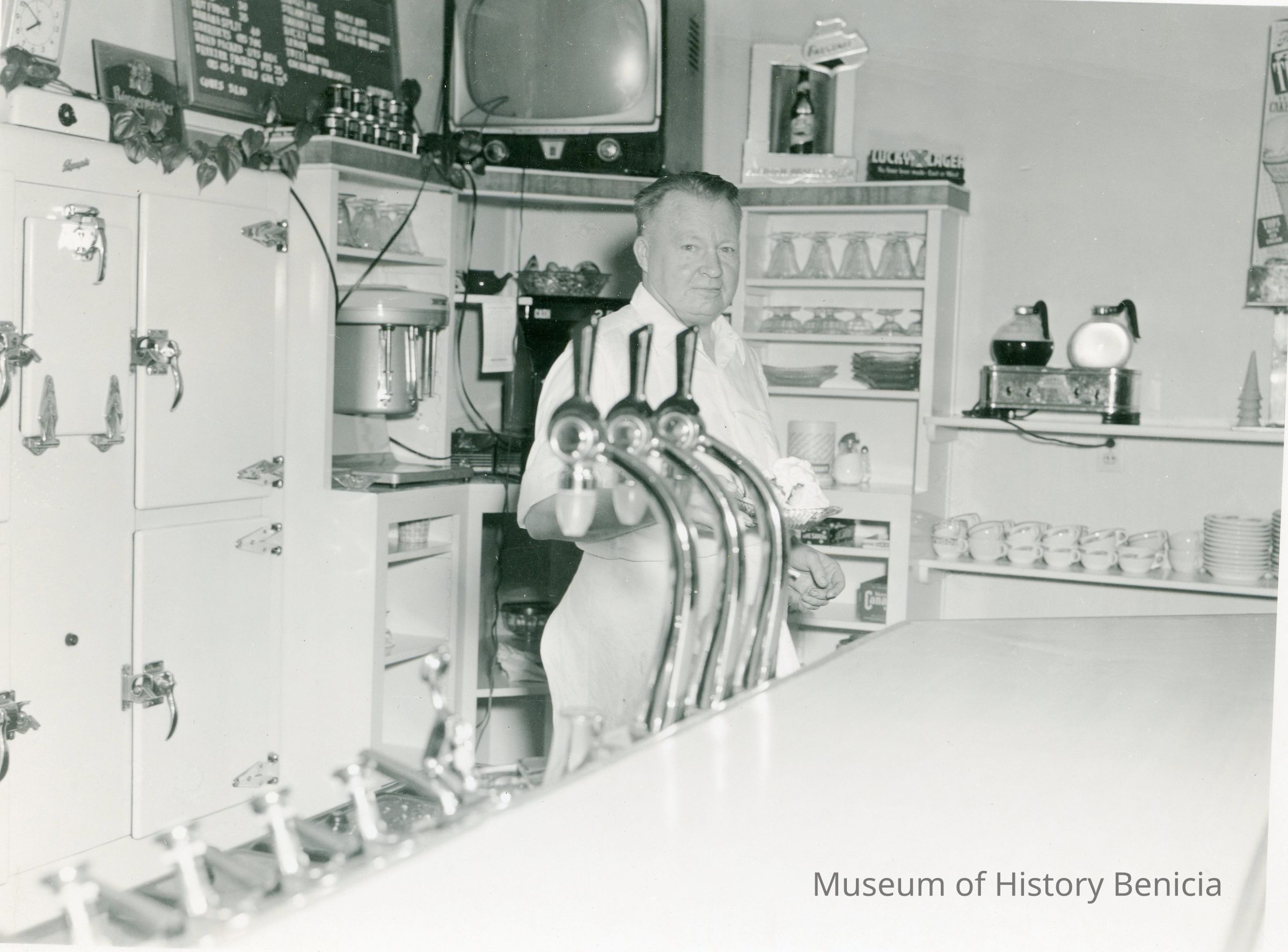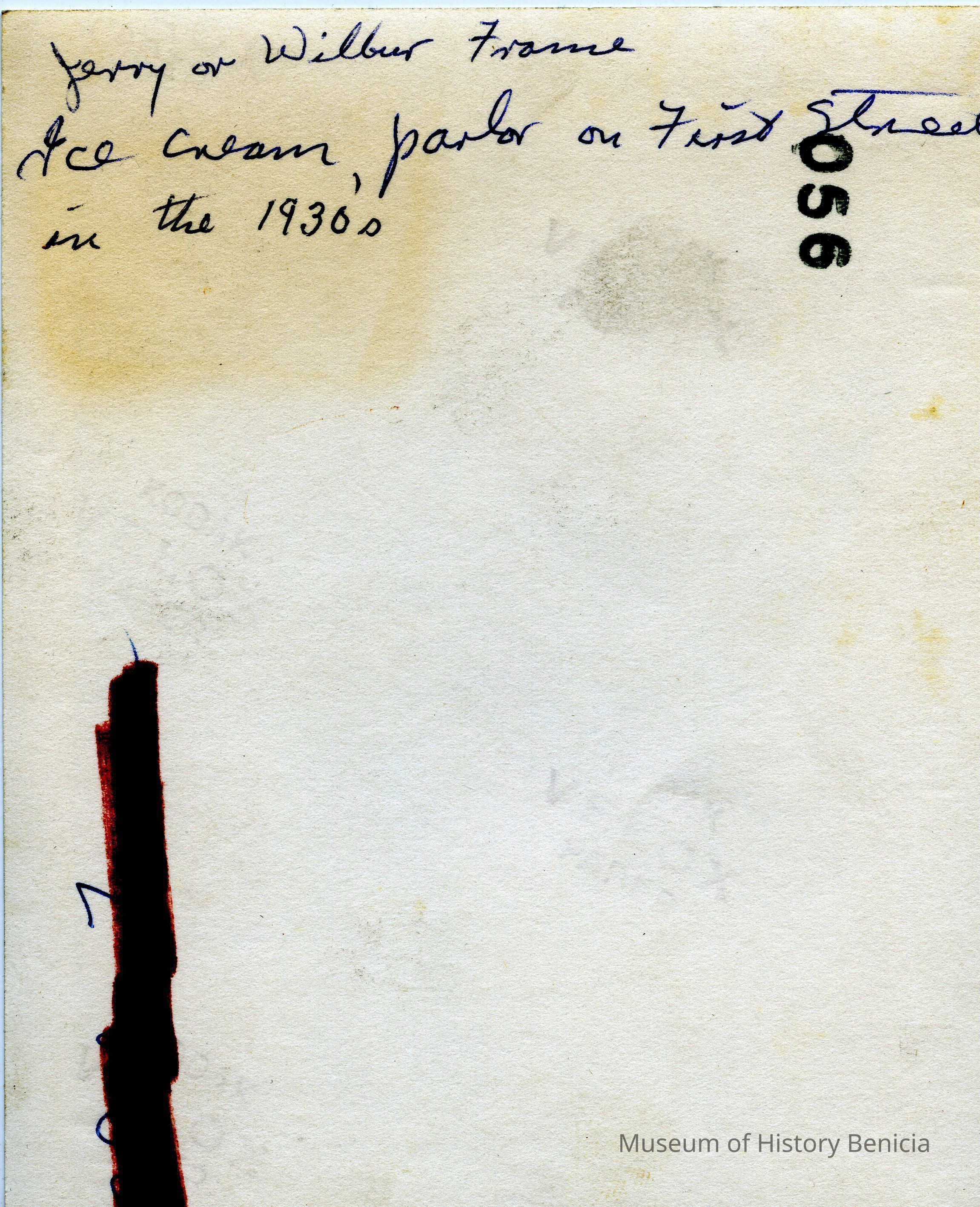 This is a photo of Jerry or Wilbur Frame in their ice cream parlor on First Street in the 1930s.