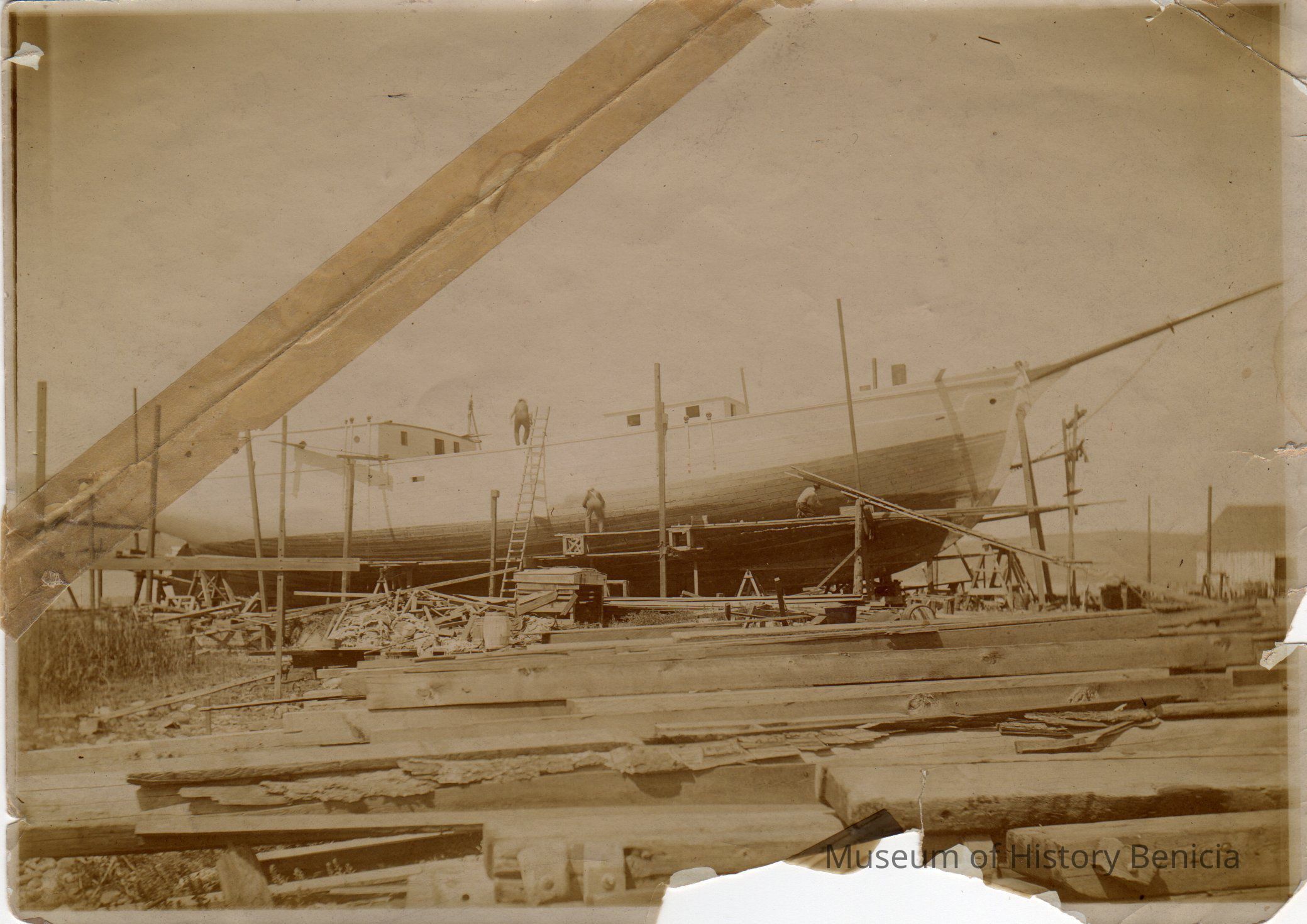 Sepia toned photograph of Benicia Ship Yard.