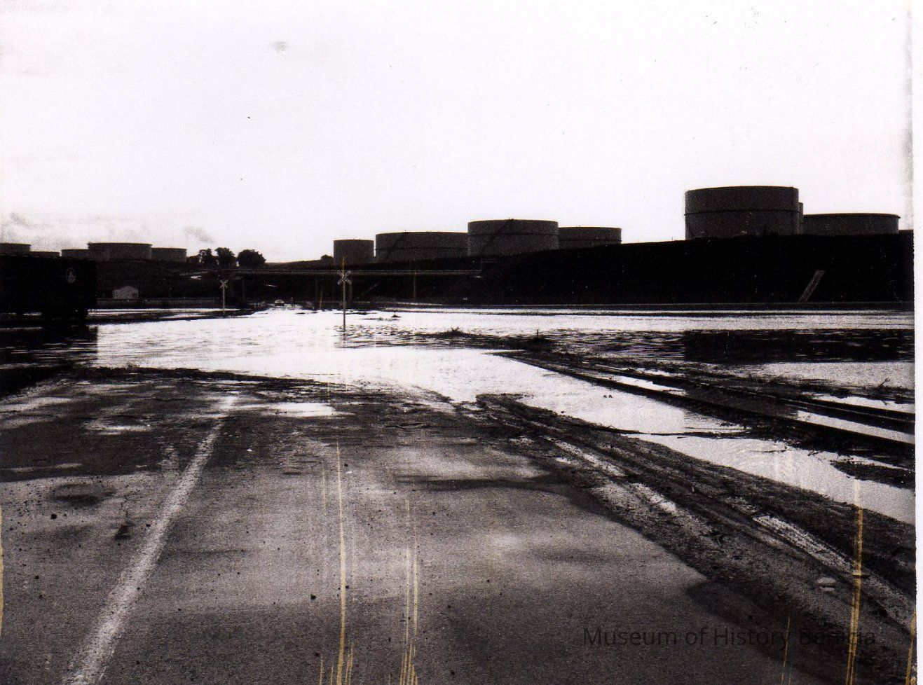 B/W Photograph: One in a series of 18 snapshots of flooded roads and fields in the Benicia Industrial Park.