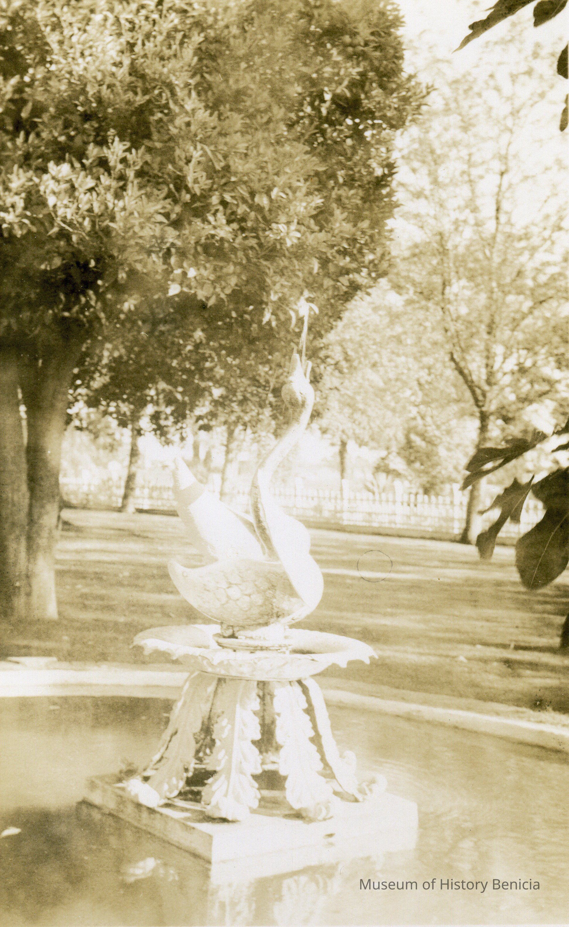 B/w photograph of a fountain. Reverse side of photograph indicates it was taken at General Vallejo's house in Sonoma. The Lenoir Miller Collection.Collection