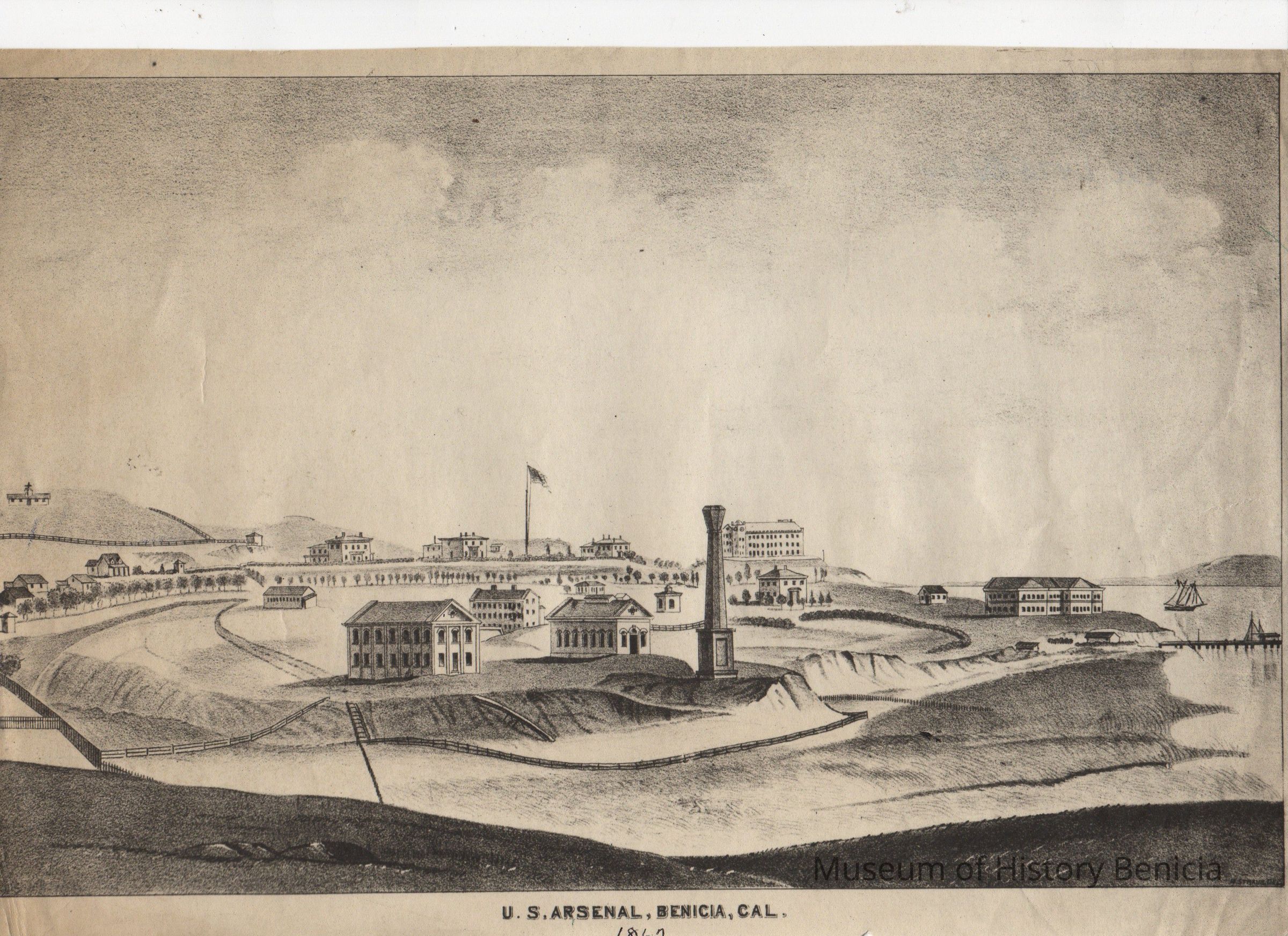 B/W Photo-Copy of lithograph of Benicia Arsenal 1862.