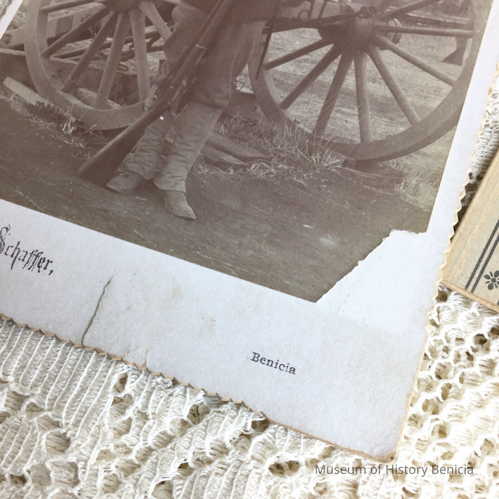 The photo was taken by C. E. Schaffer (Charles Eighmy Schaffer). He was born in 1861 in New York. He was a photographer in Benicia at least by 1898 according to the 1898 voter registration records. (He is not shown in the 1902 voter registration list for Benicia precinct 2.) There is an Ebay photo of his for sale of a Spanish American War soldier (see attached) in Benicia.Collection