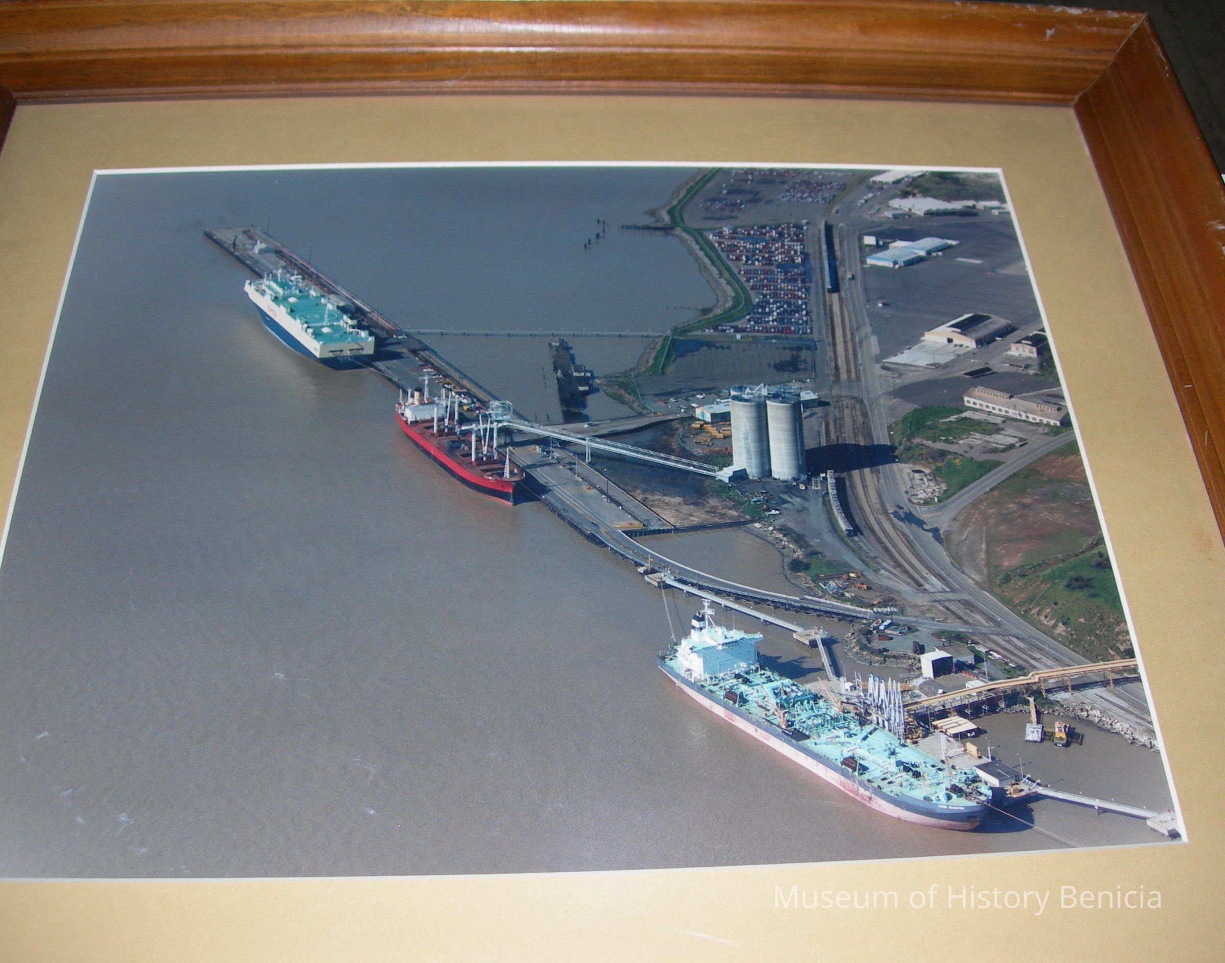 subject: Industrial Park Pier, Silos, and three ships tied up to the pierCollection