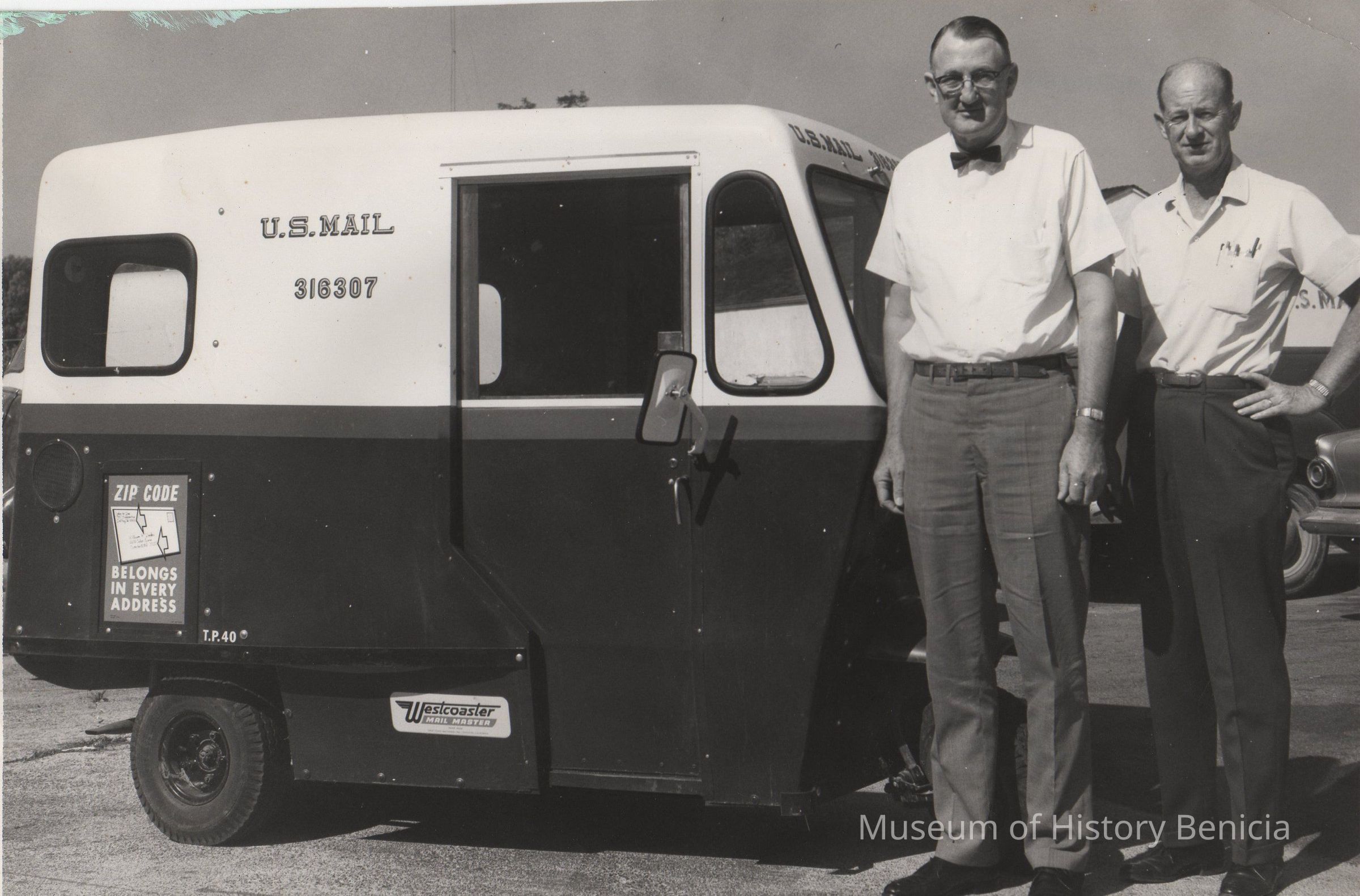 B/W photograph: Mike Fitzgerald (left) was the Benicia Postmaster and also served as mayor.