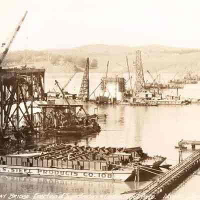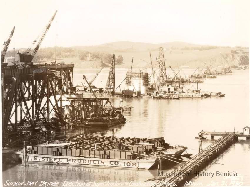 Photo of the building of the Suisun Bridge. Photos are numbered and annotated.