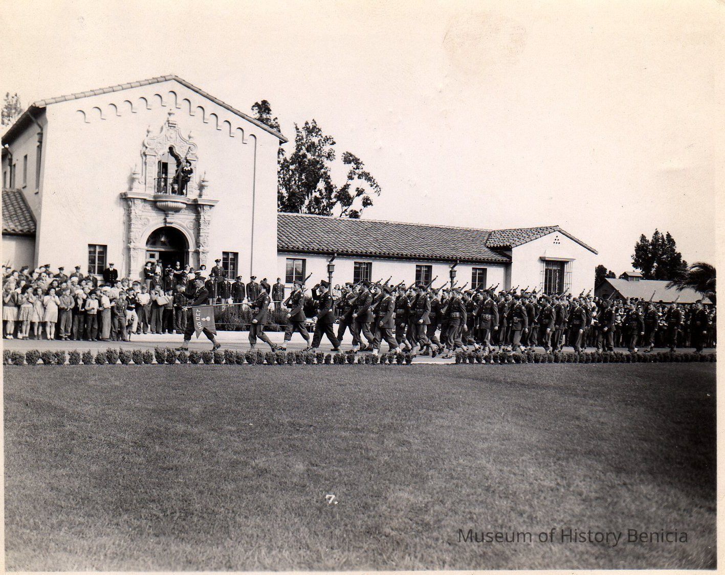 B/W Photograph: Inspection of detachment in front of headquarters (per writing on back).