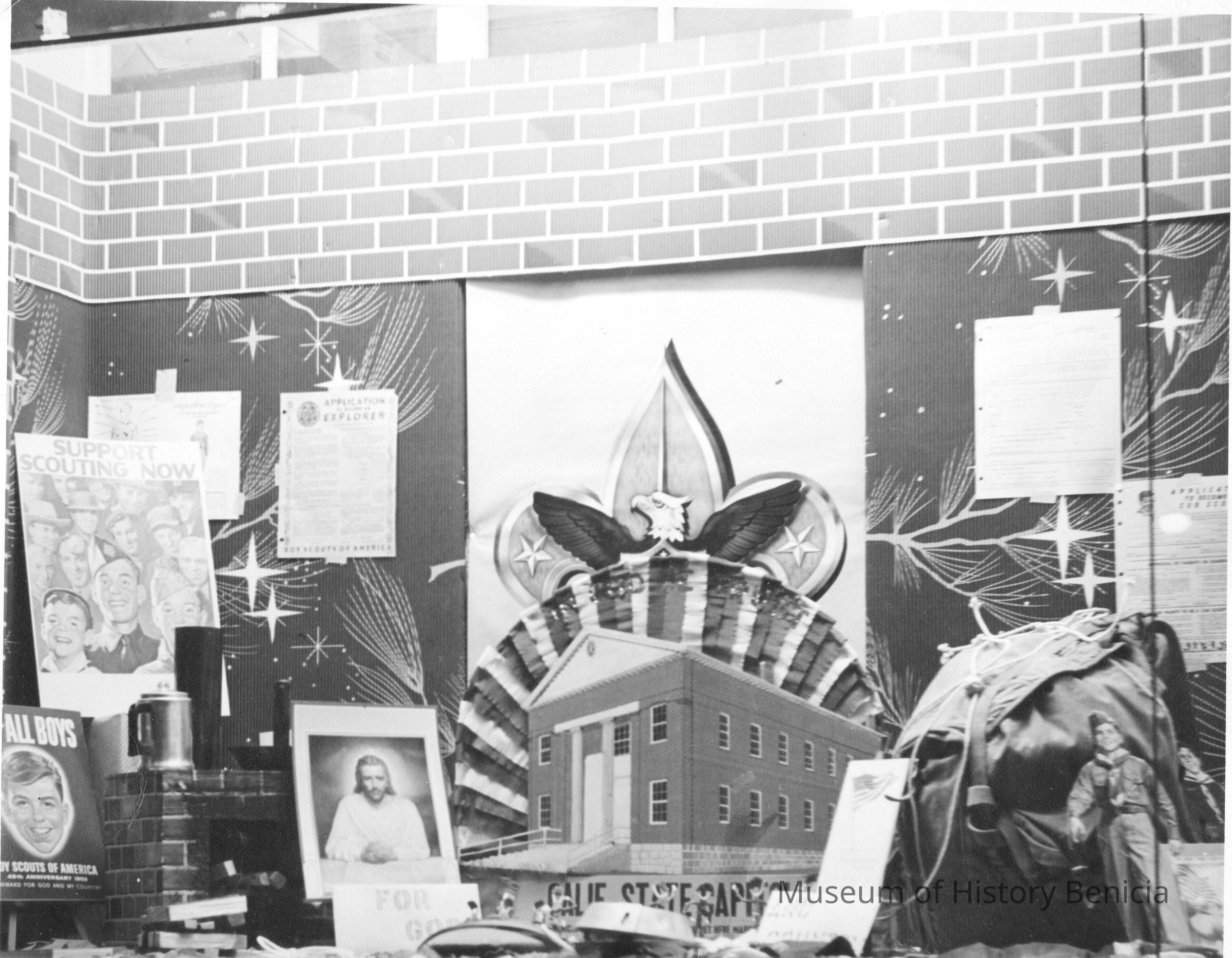 Photo of a display of Boy Scout stuff. There is a copy in the donor file.