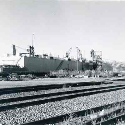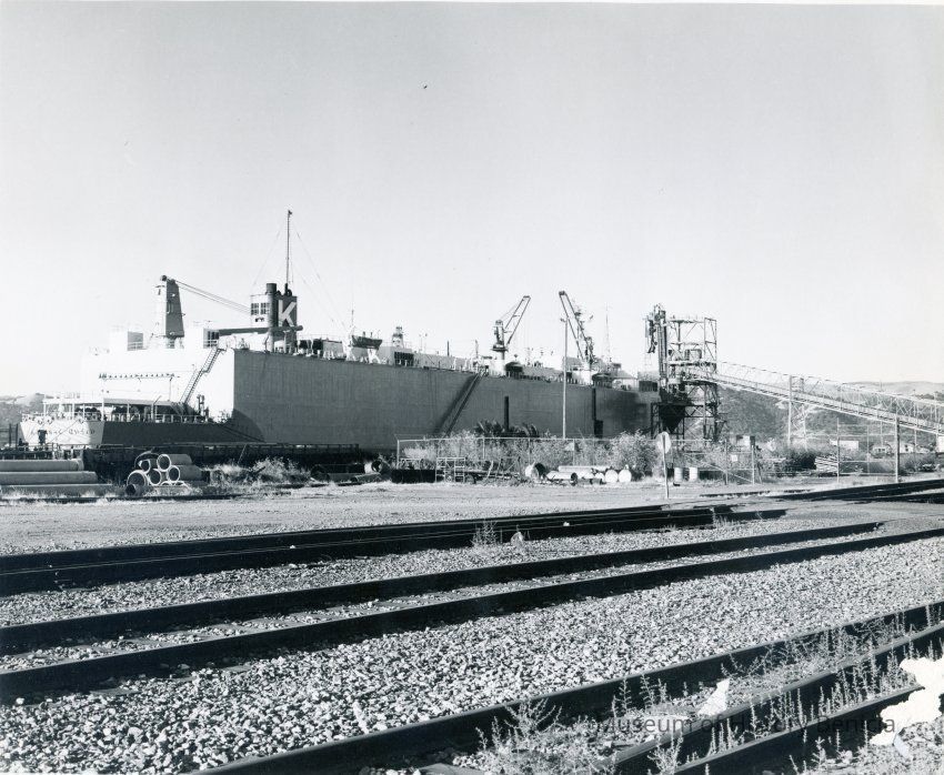 This is a photo of Chinese cargo ship at the Benicia loading docks.