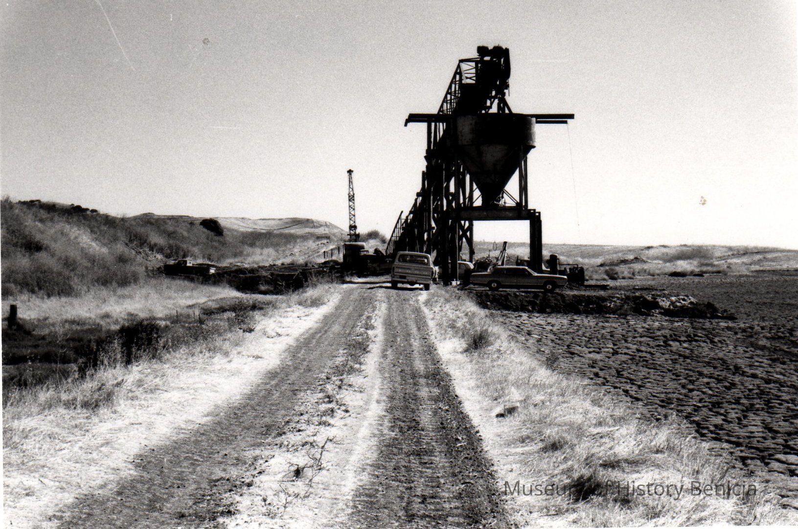 B/W Photograph: Industrial Park shore, east of Benicia Bridge; loader with vehicles nearby one of a set of 12