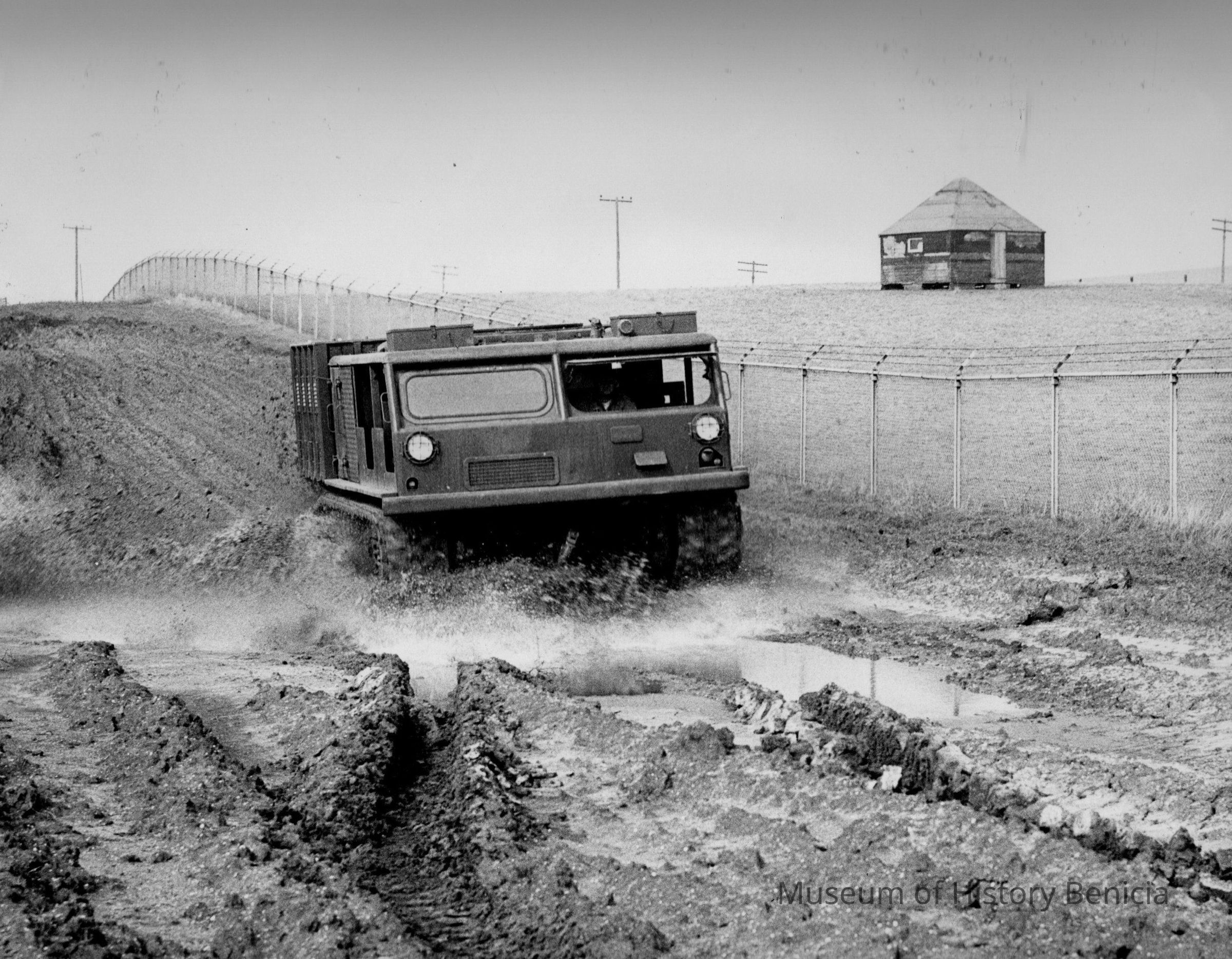 Written on back: "Testing equipment at Benicia Arsenal prior to shipment overseas." U. S. Army photograph stamp also on back. B/W photo.Collection