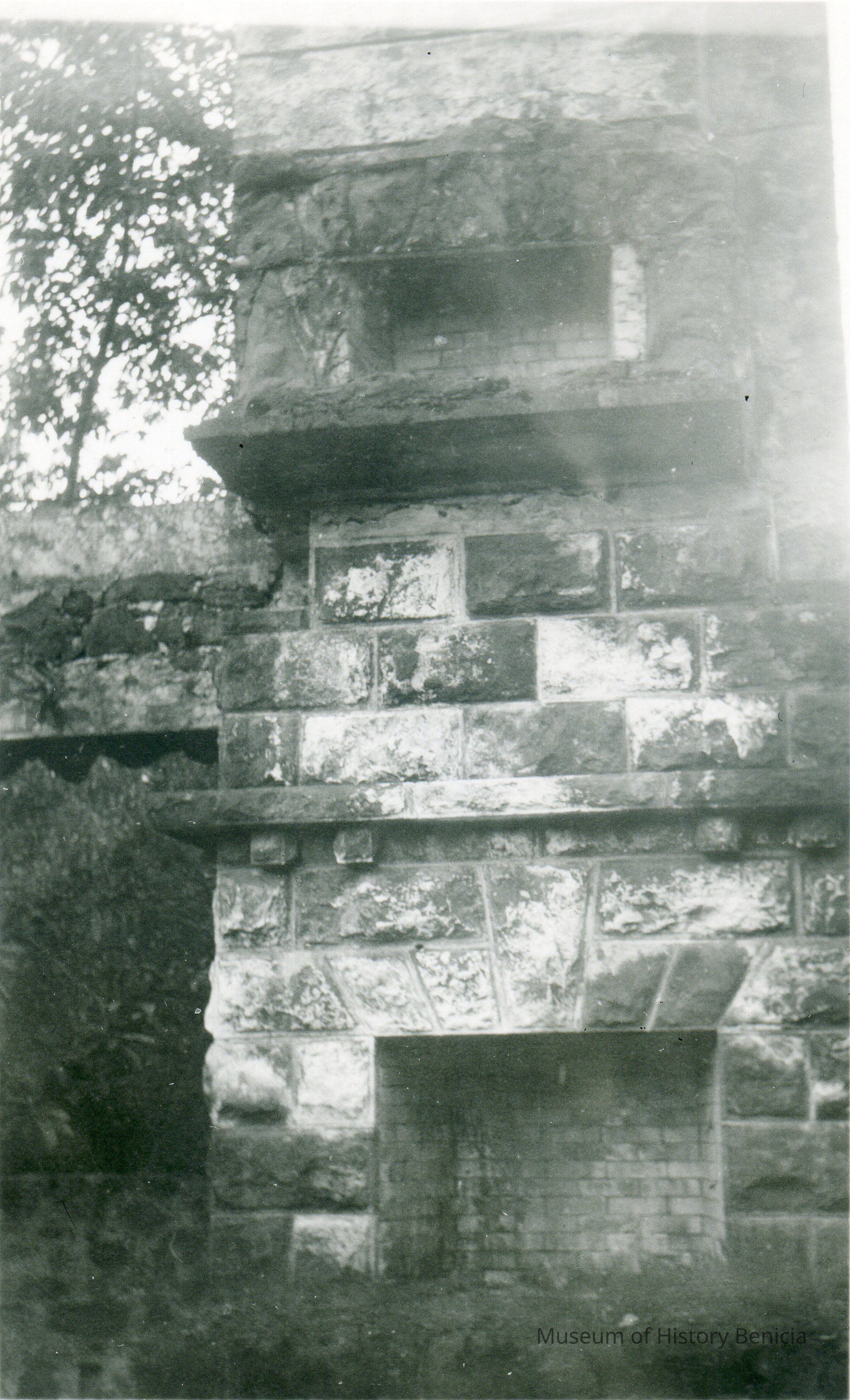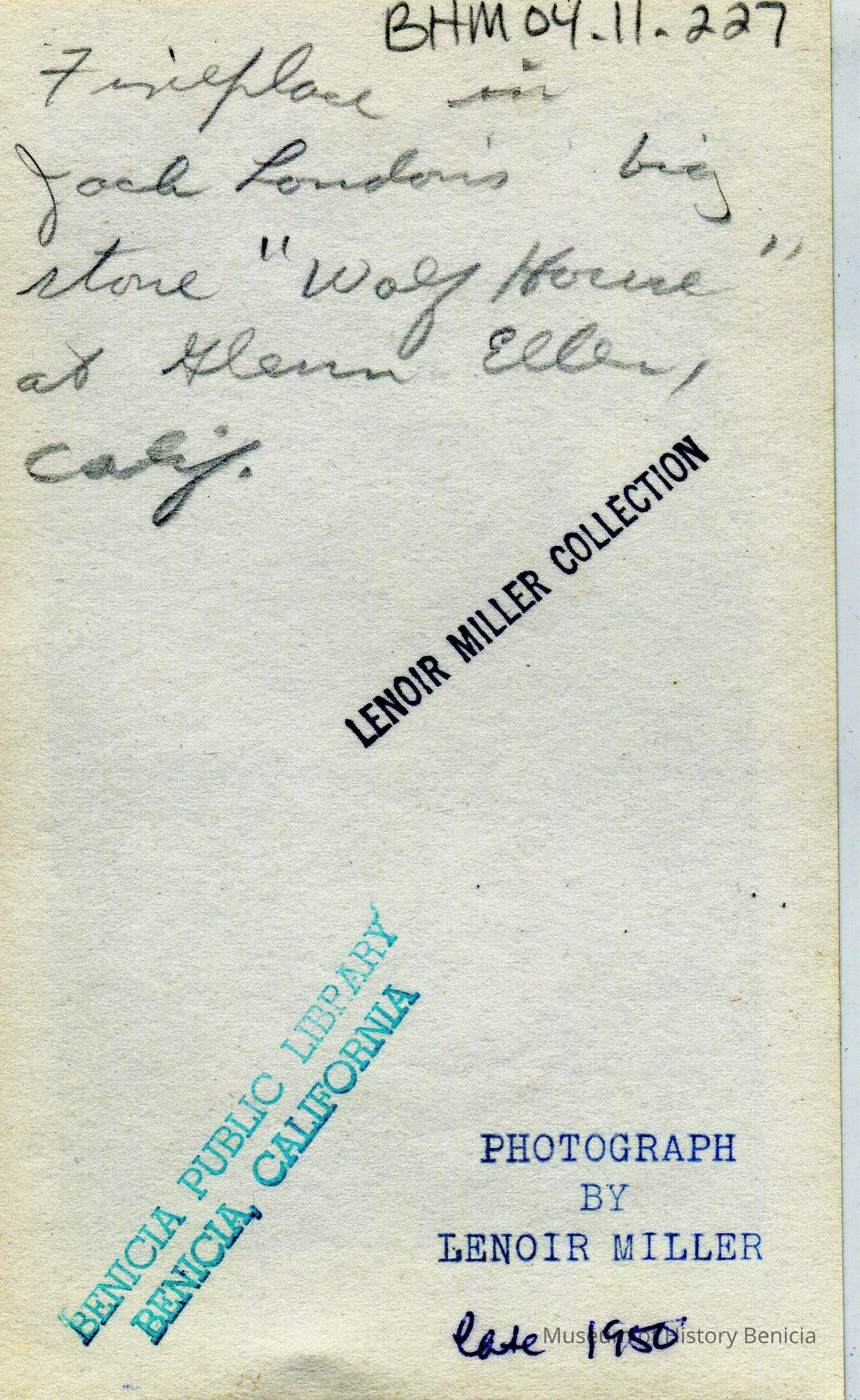 B/W photograph of fireplaces in the ruins of Jack London's Wolf House at Glenn Ellen, Calif.