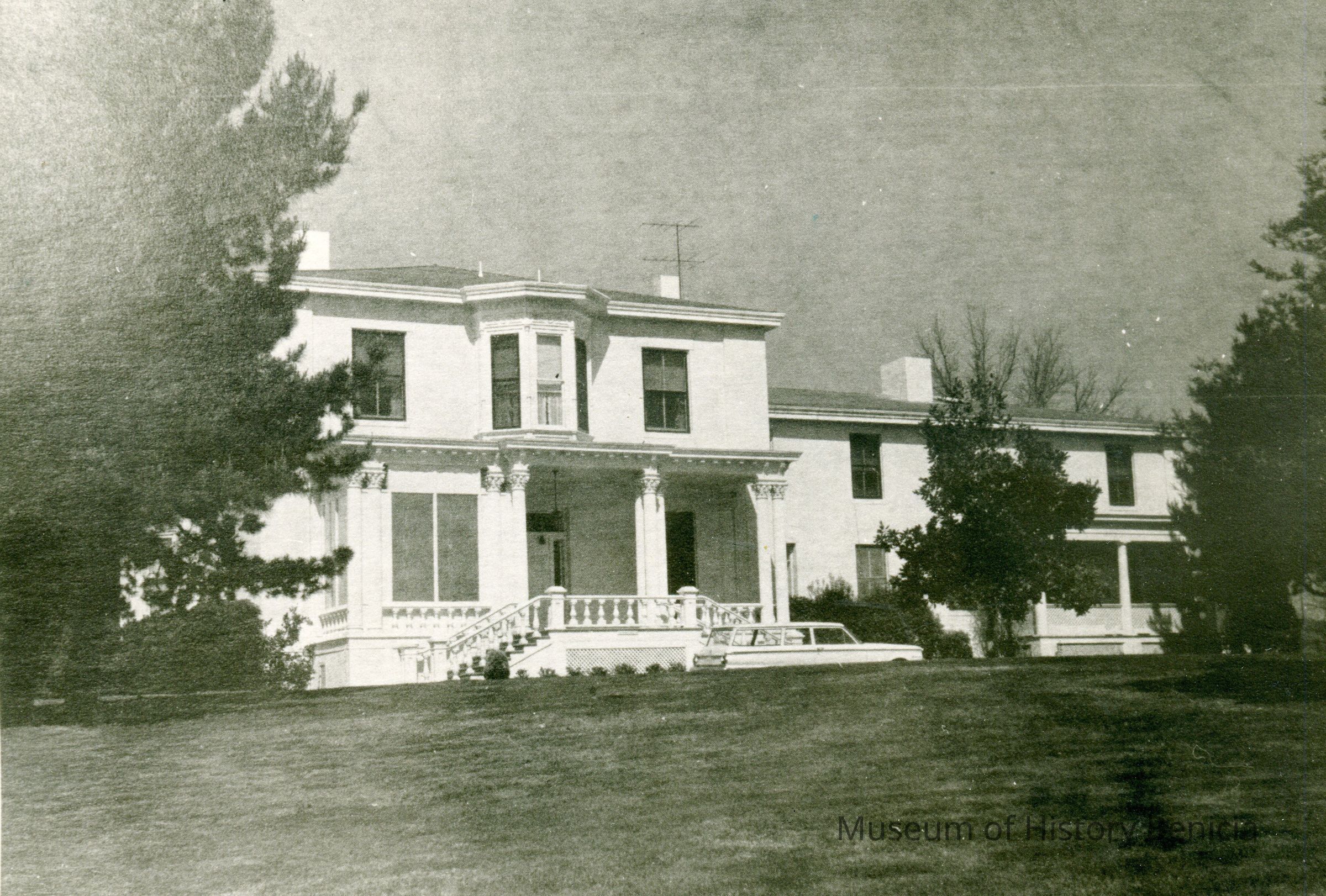 Photograph of building No. 28 in the Benicia Arsenal. This is the building that was the Commanding Officers quarters. The photo was taken in 1966. On the back of the photo it says this is #28 1860 C.O. Home.Collection