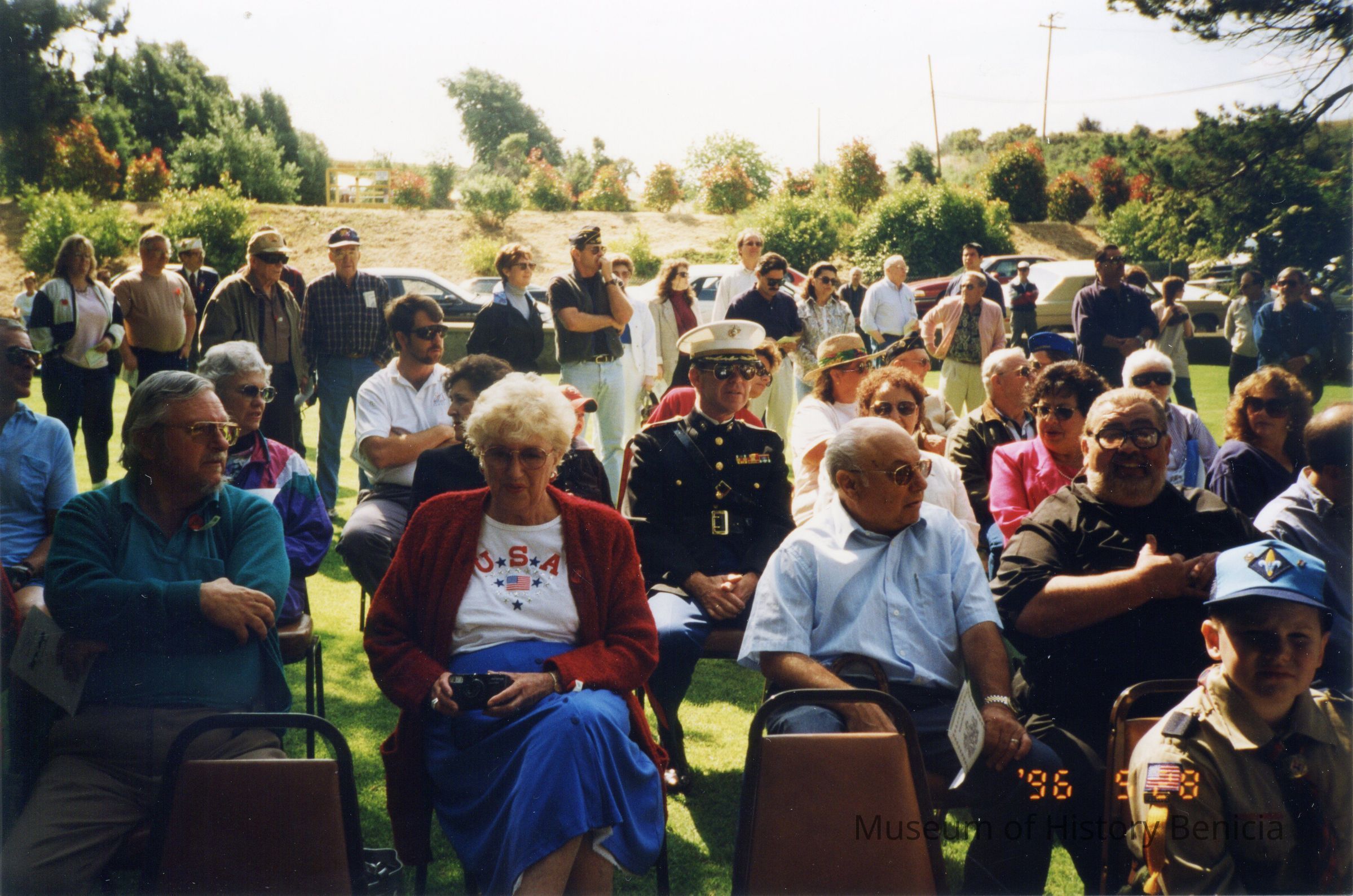 Color snapshot of seated audience at Memorial Day ceremonies at U.S. Army cemetery.