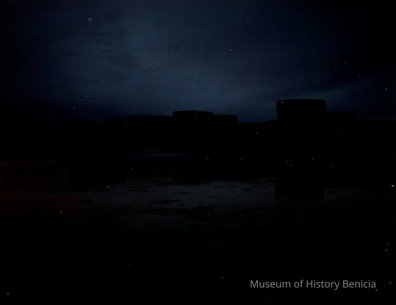 this photograph is very dark; some light in sky above holding tank can be seen in top centerCollection