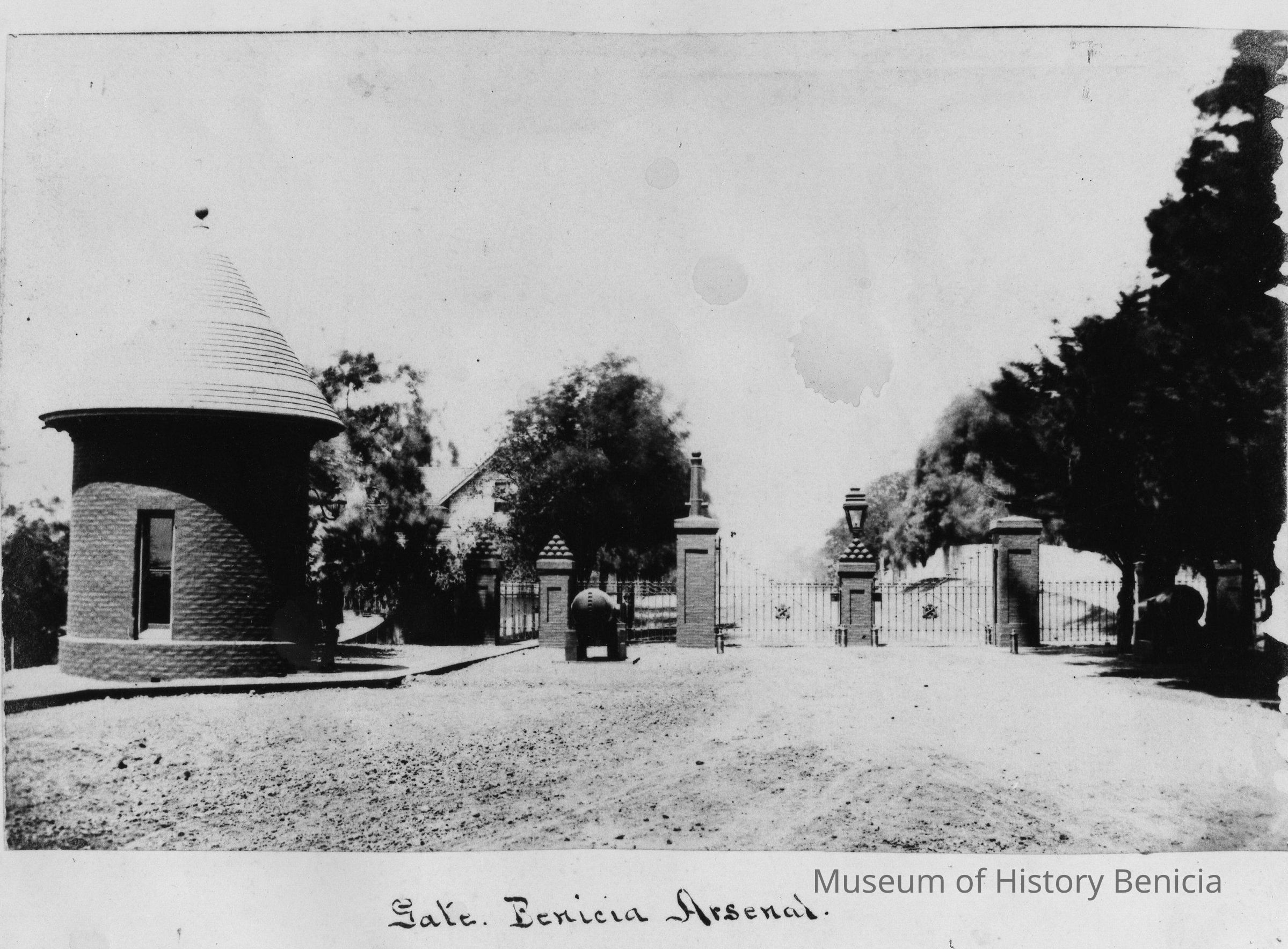 B/W photograph of a photograph captioned "Gate Benicia Arsenal"
