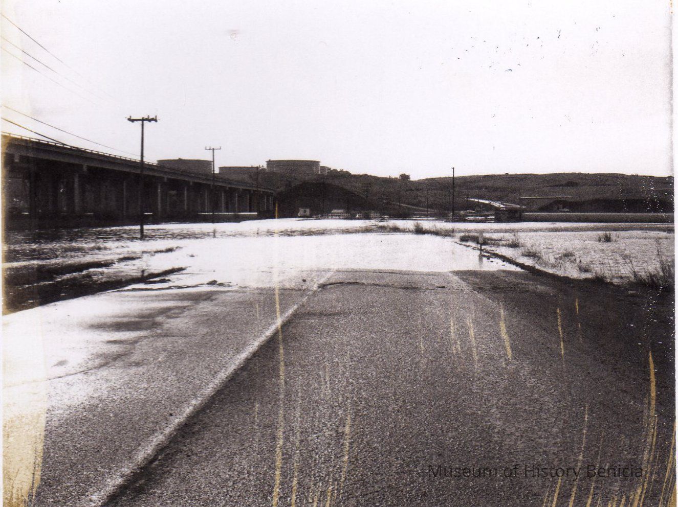 B/W Photograph: One in a series of 18 snapshots of flooded roads and fields in the Benicia Industrial Park.