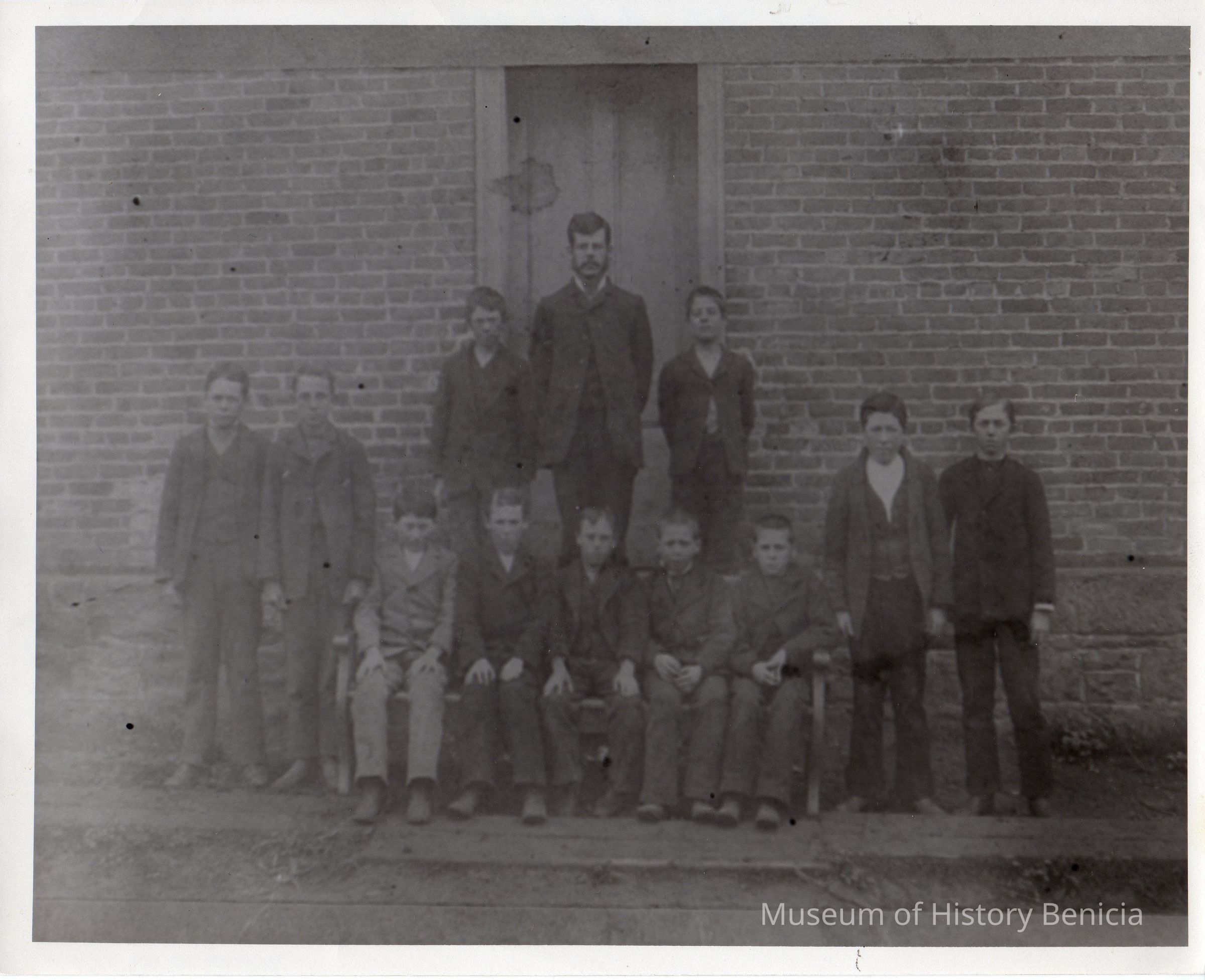B/W photo of students from the old state capitol building school Benicia, CA