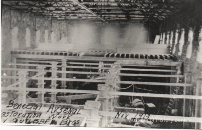 Reconstruction of Clock Tower after explosion on Oct. 18, 1912. B/W photo.
