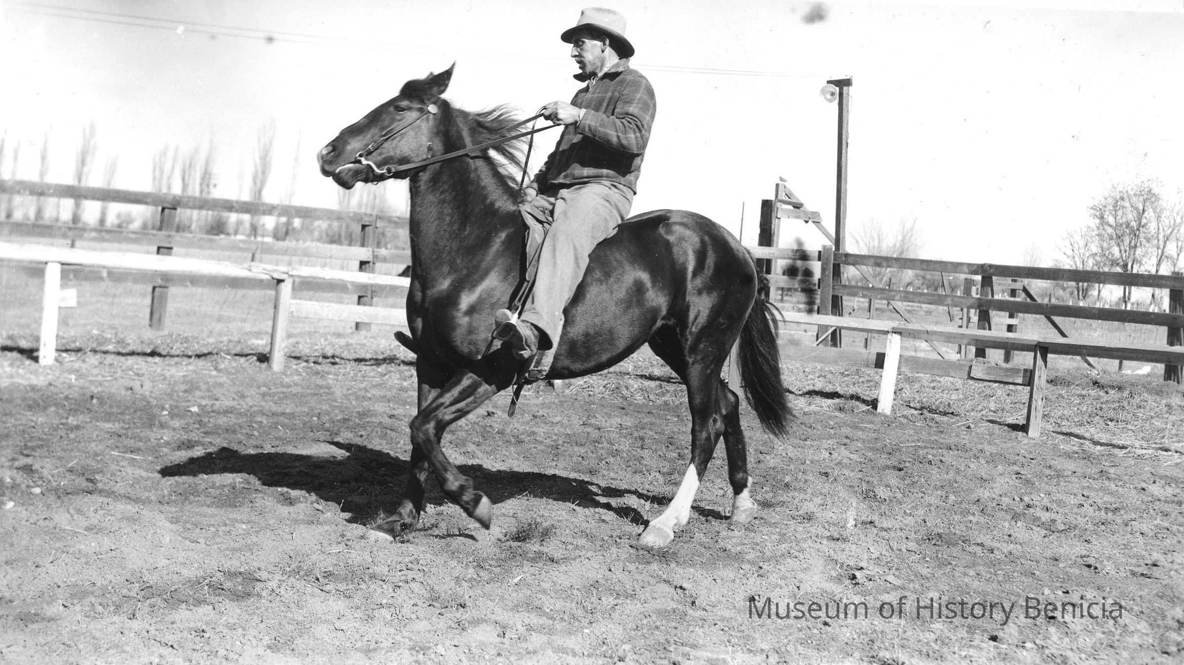 Photograph of a man training a horse. Taken at The Pines in Bass LakeCalif.