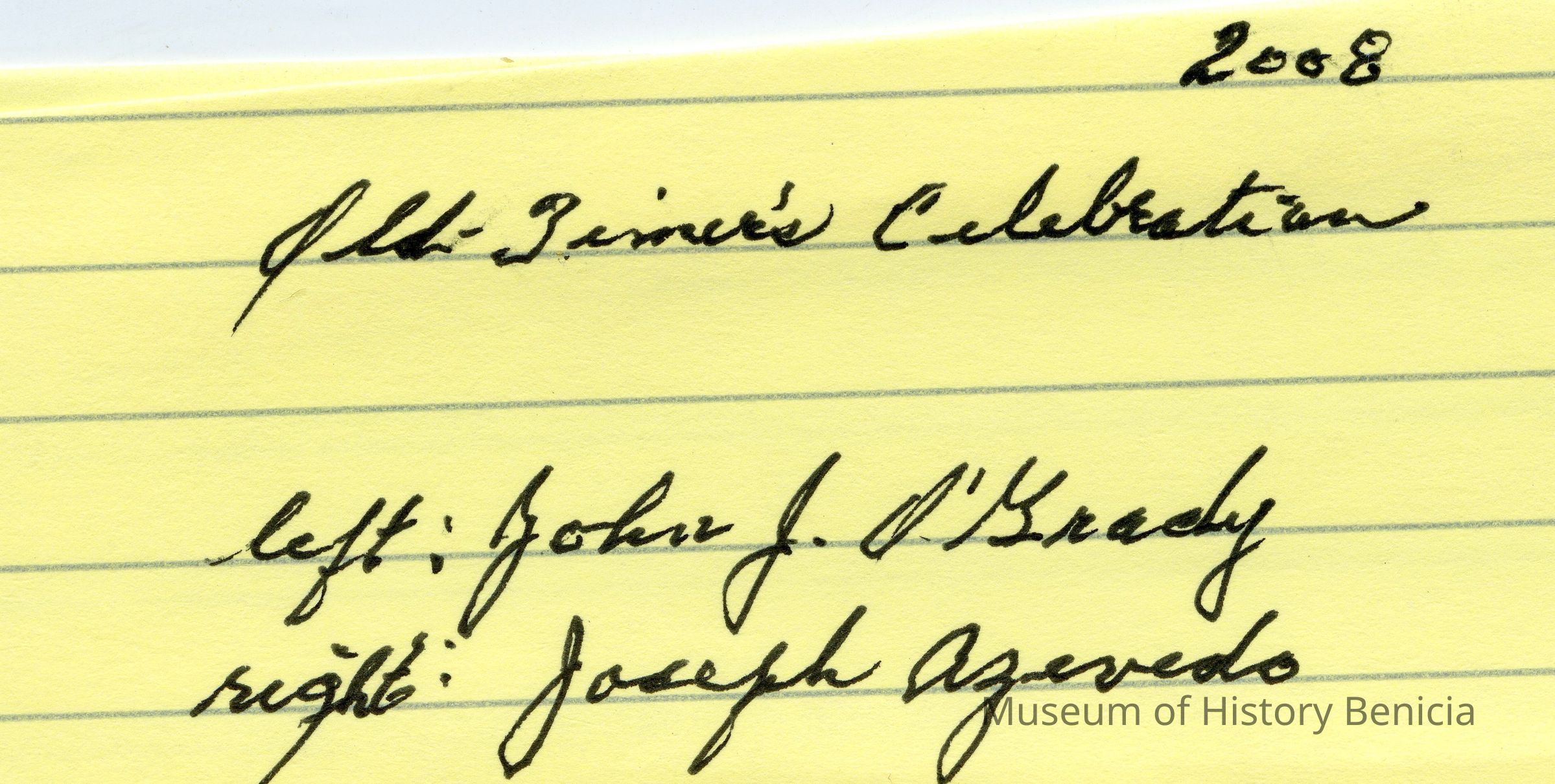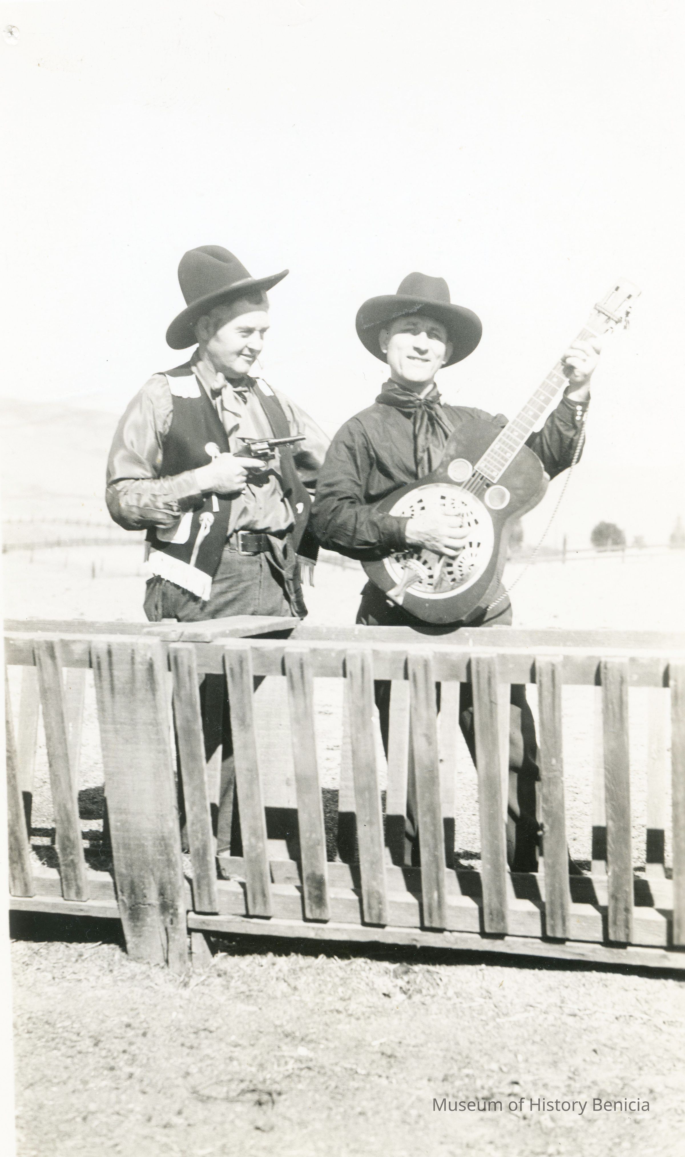 This is a photo of two guys dressed for the Old Timer's Celebration. The man on the left is John J. O'Grady and the other man is Joseph Azevedo.Collection