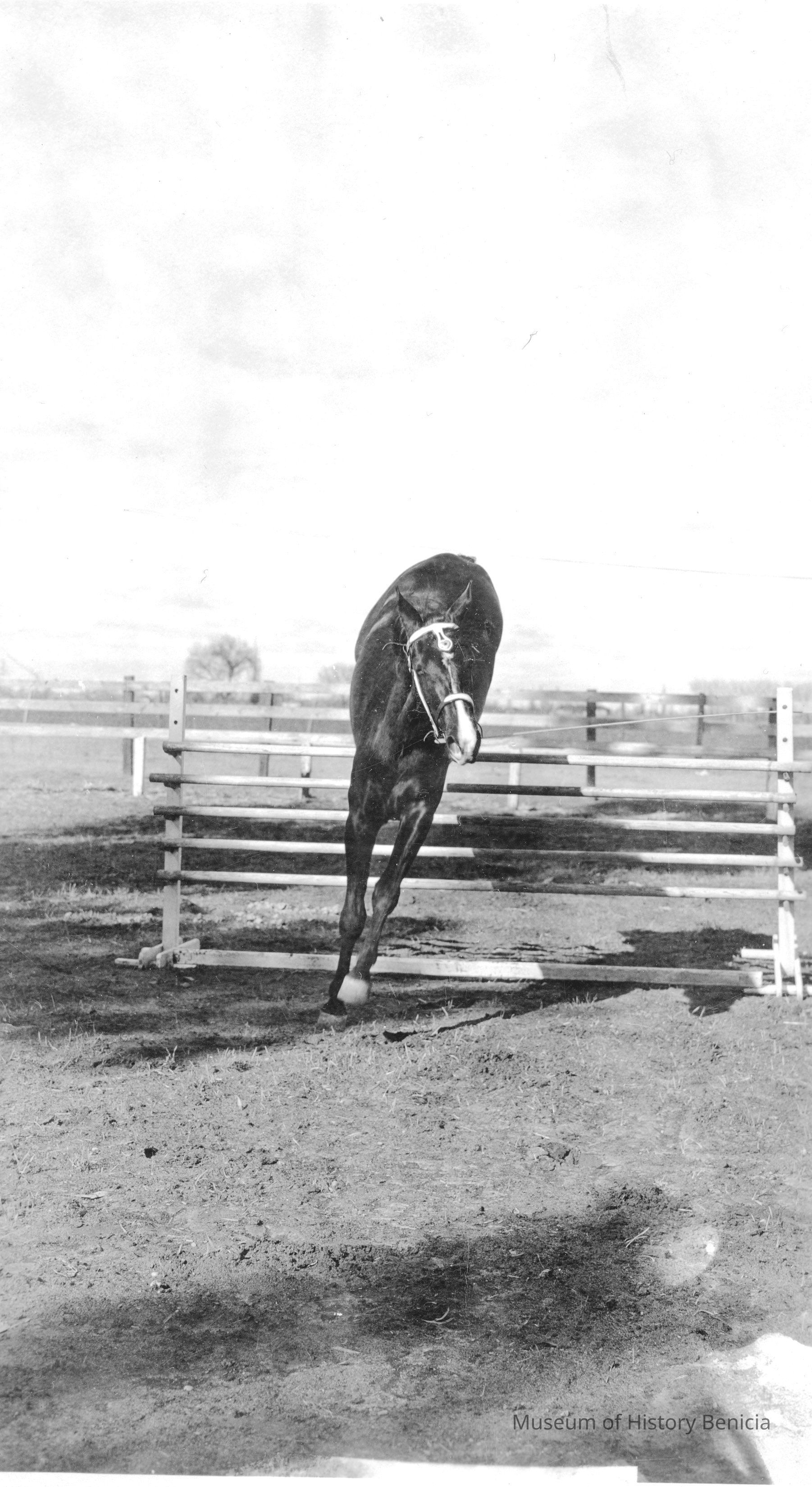 Photograph of a horse being trained. Taken at The Pines in Bass LakeCalif.