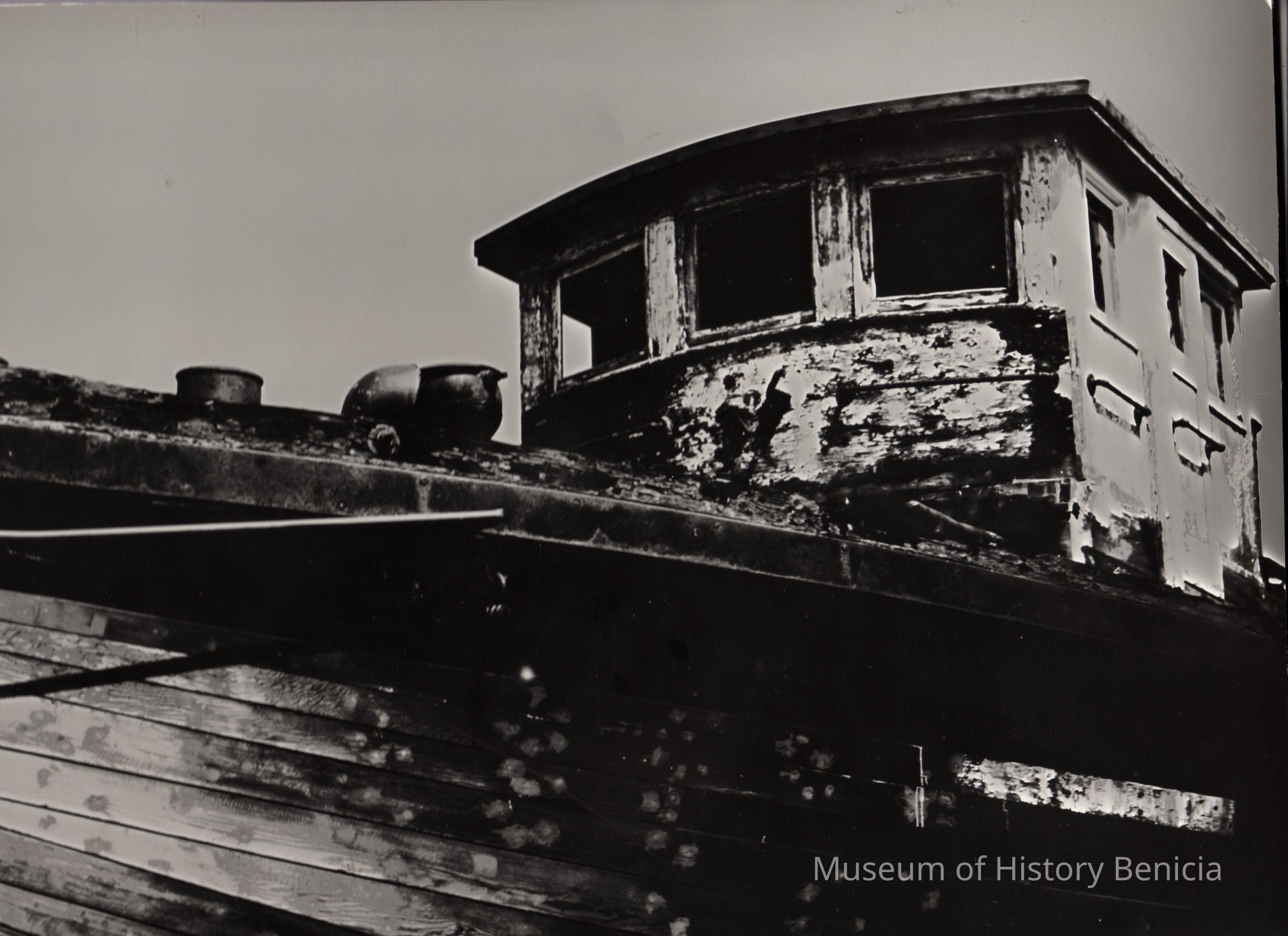 B/W photograph: wreck of a Tug Boat. Black and White photo.